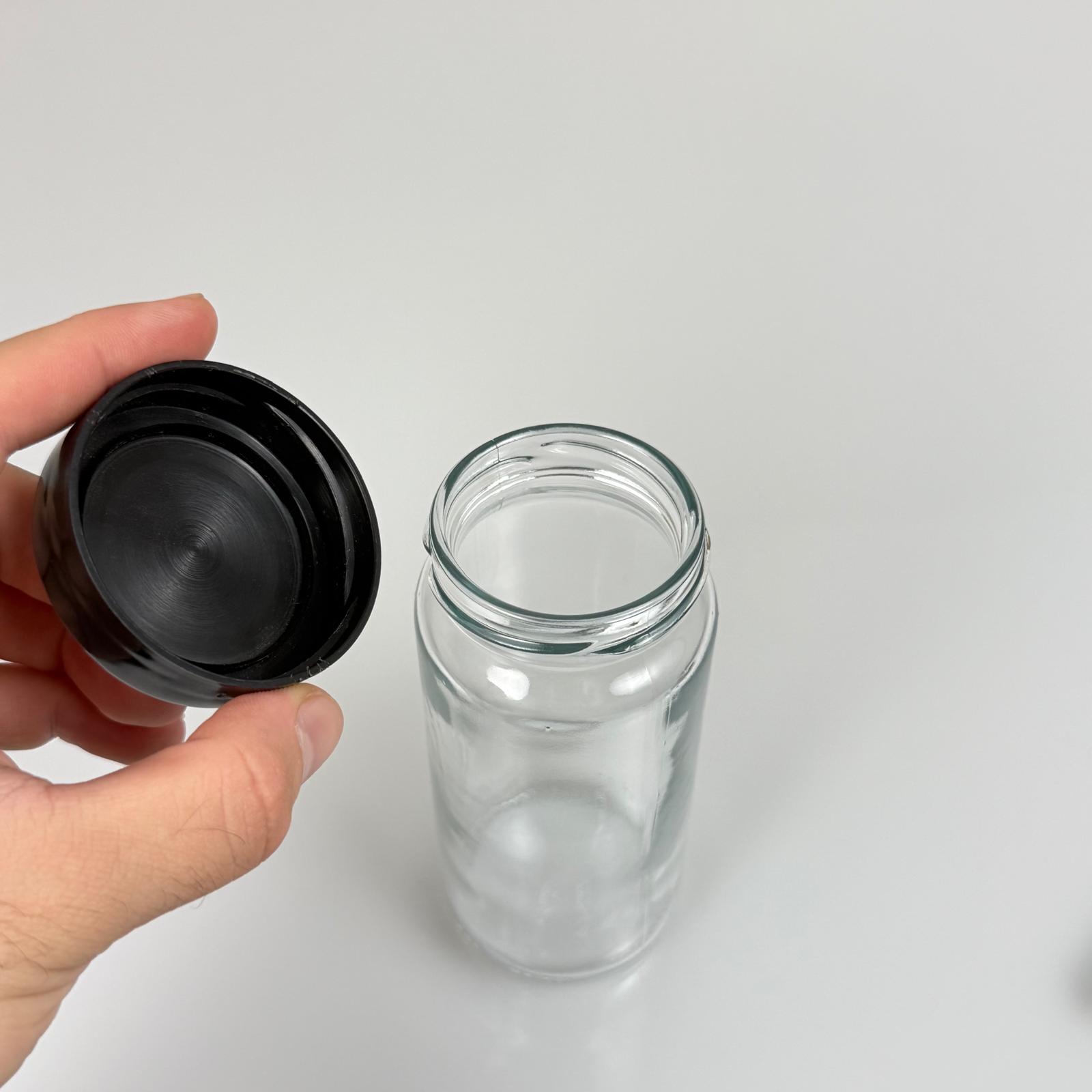 244 CC CAM KAVANOZ + SİYAH PLASTİK KAPAK - 244 ML PLASTİK KAPAKLI CAM KAVANOZ - 70 adet