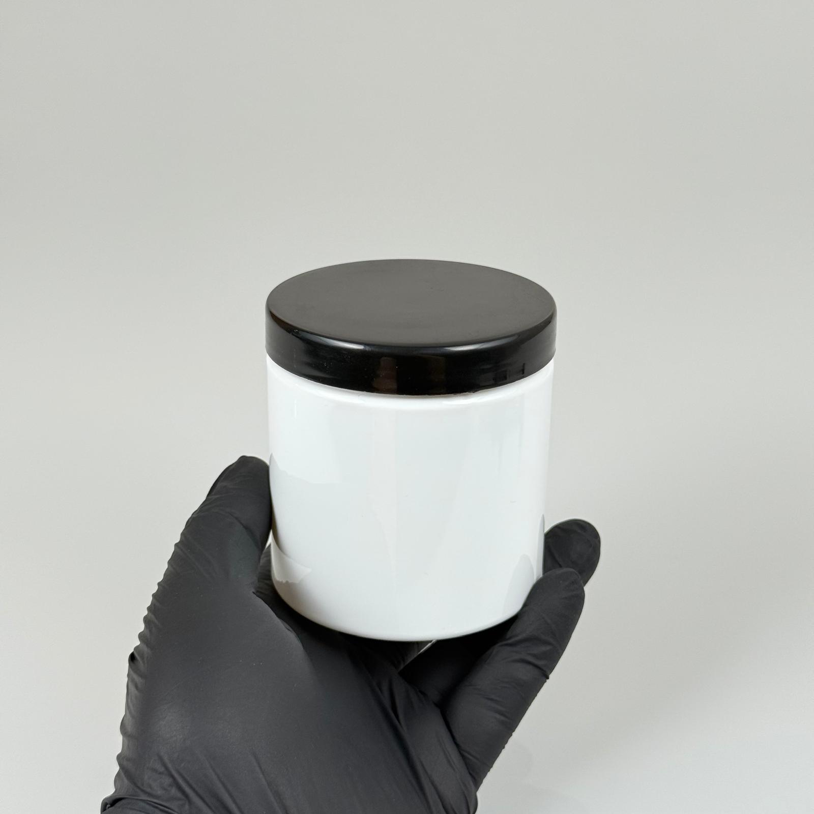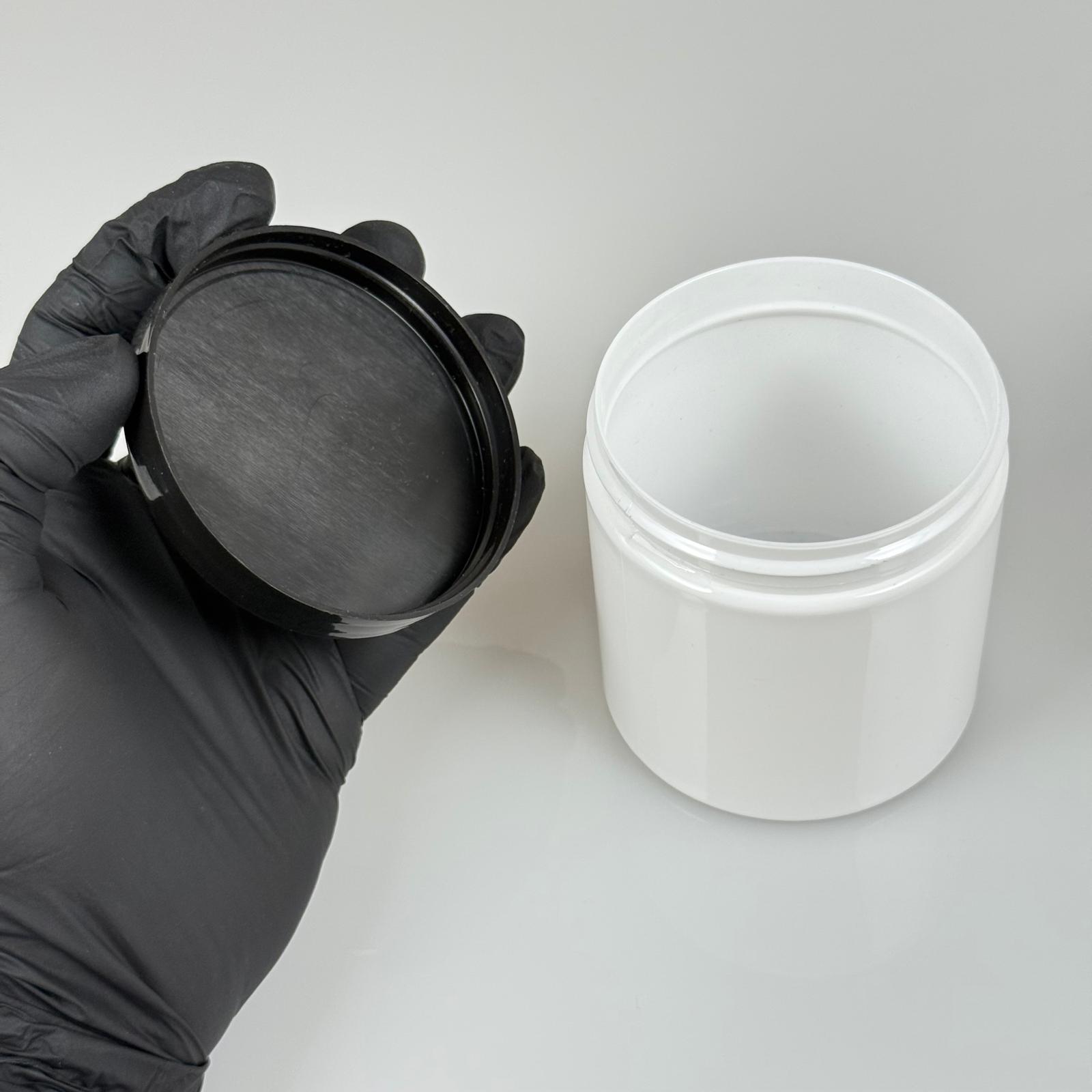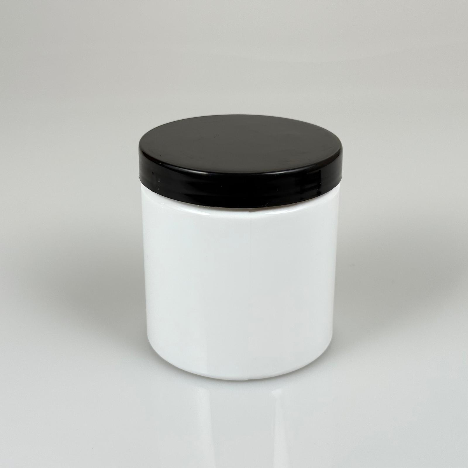 250 CC BEYAZ SERT PLASTİK KAVANOZ - SİYAH PLASTİK KAPAKLI - 250 ML PLASTİK KAPAKLI PLASTİK KAVANOZ - KOZMETİK KAVANOZ, GIDA KAVANOZU VE KREM KAVANOZU OLARAK KULLANABİLİRSİNİZ - 300 adet