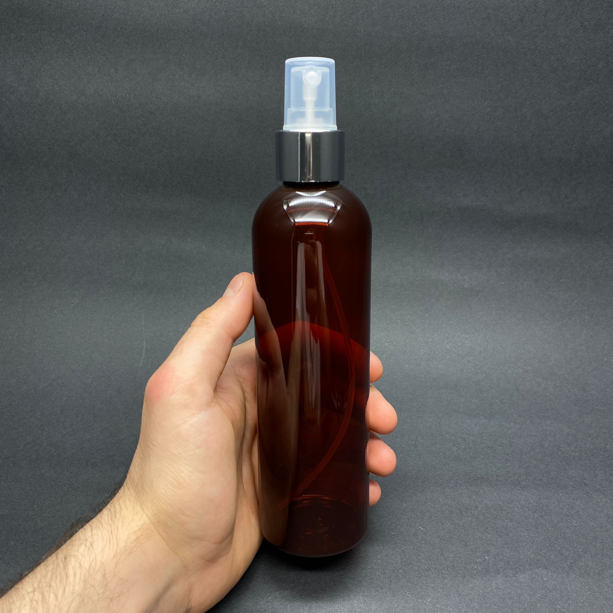 250 CC KAHVERENGİ PET ŞİŞE - GÜMÜŞ SPREYLİ - 250 ML SPREYLİ PLASTİK ŞİŞE - 330 adet