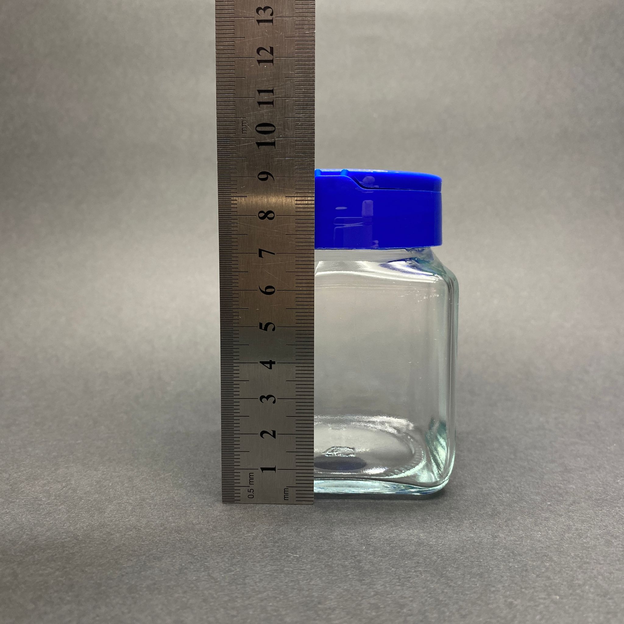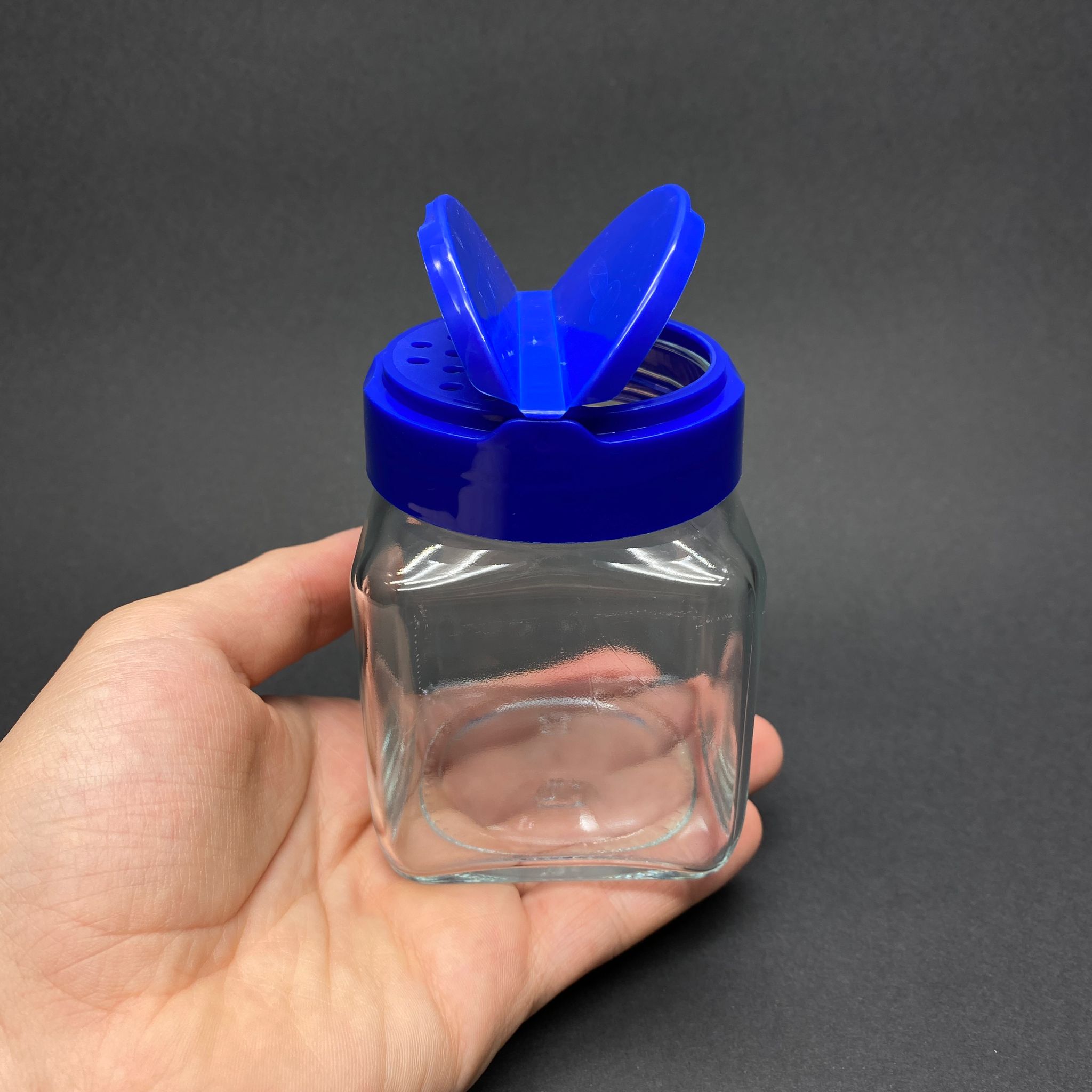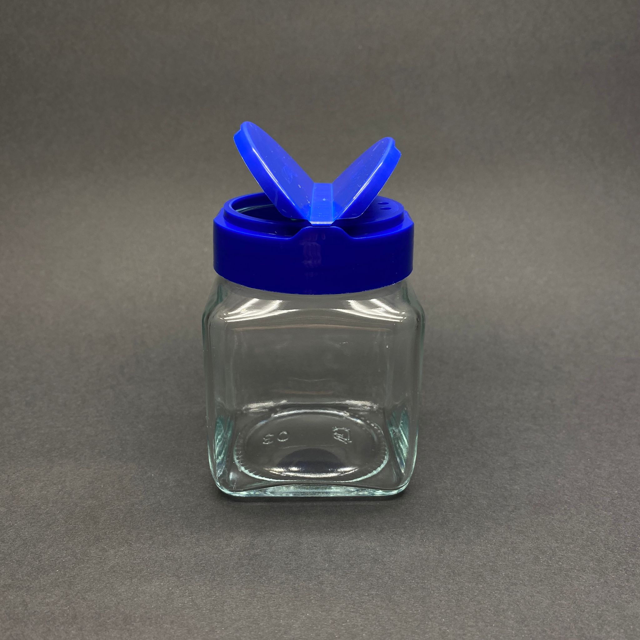 250 CC KARE CAM BAHARATLIK KAVANOZ - 250 ML KÖŞELİ BAHARAT KAVANOZU - MAVİ AÇILIR KAPANIR KAPAKLI - 108 adet