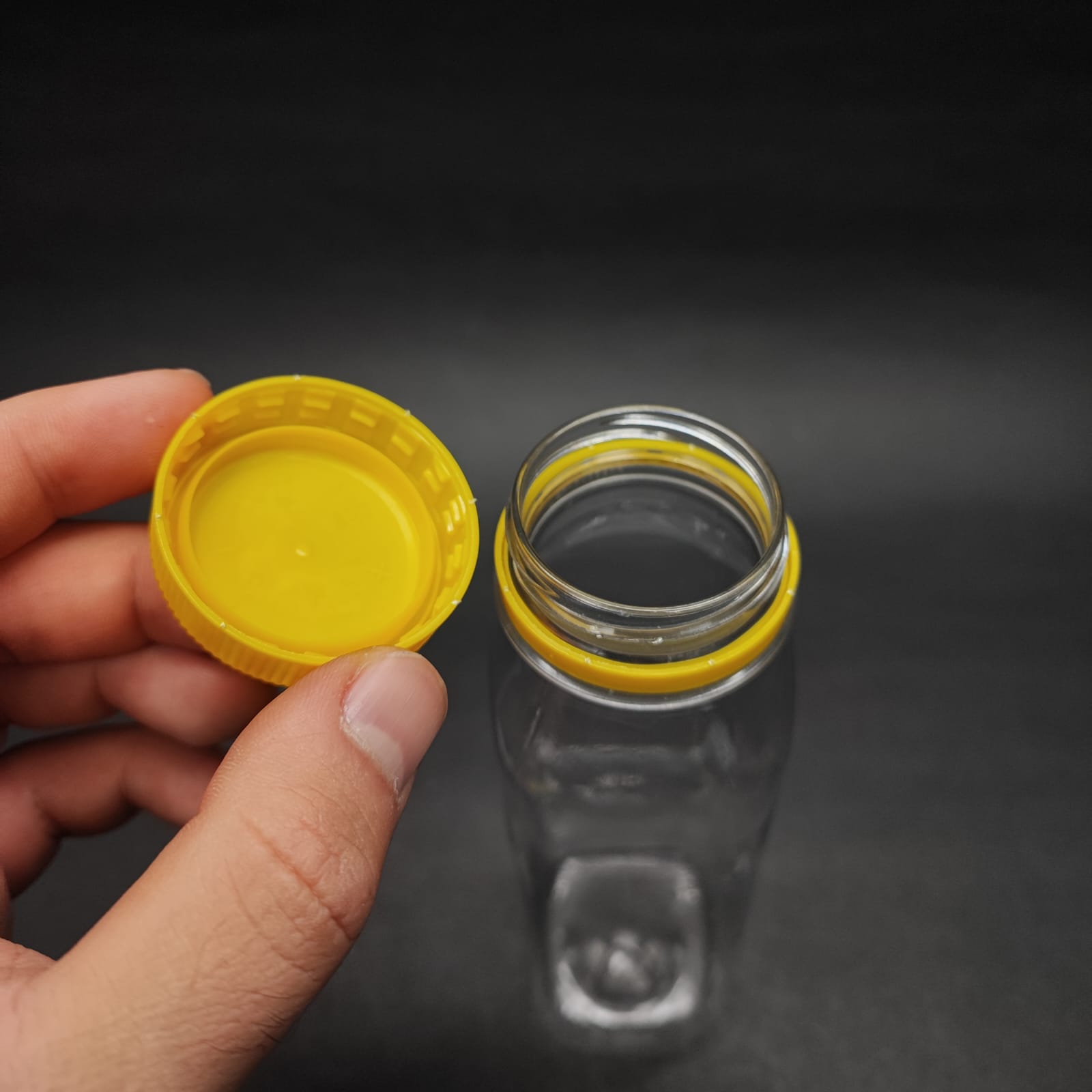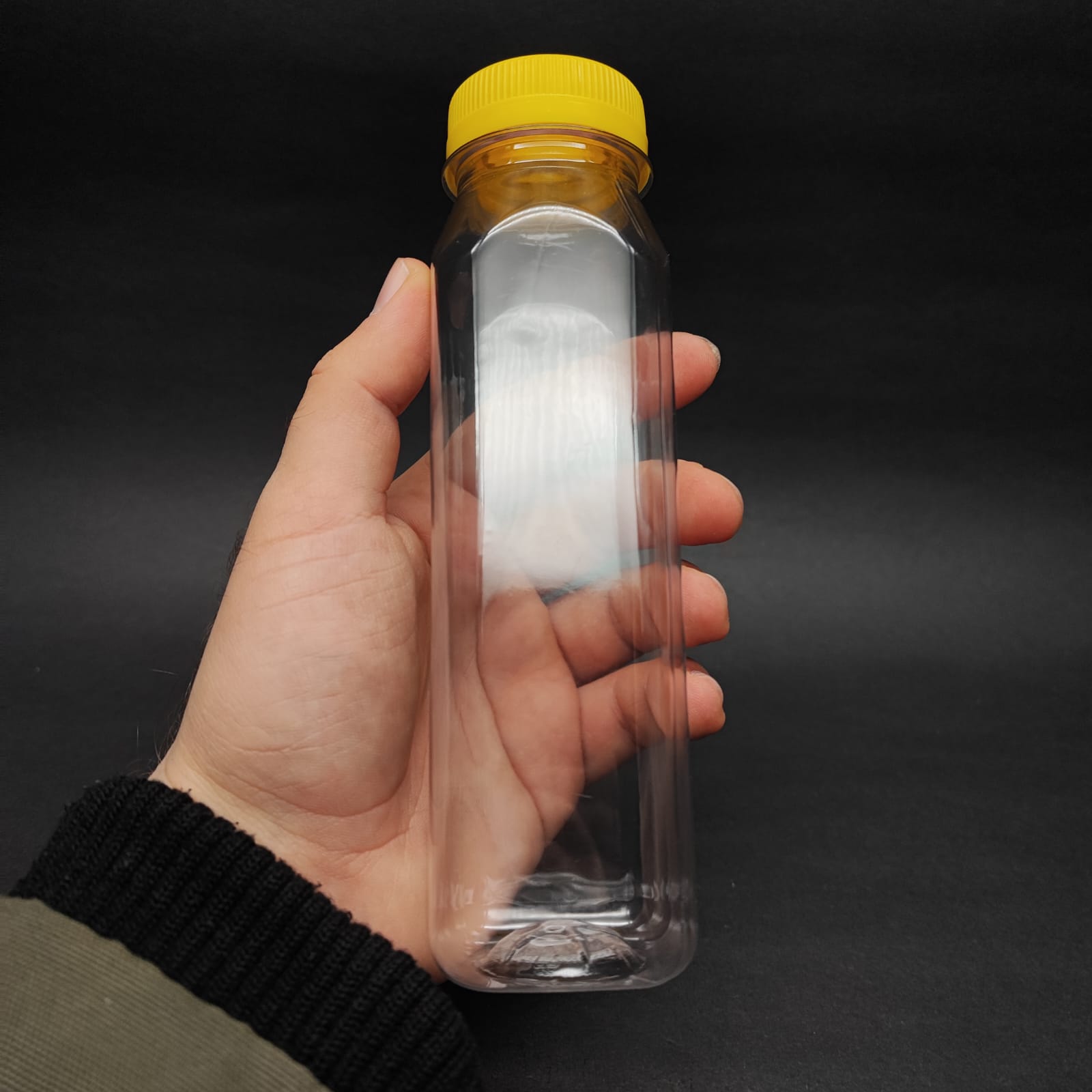 250 CC KARE PET ŞİŞE (19 GR) - GENİŞ AĞIZLI SARI KİLİTLİ KAPAKLI - 250 ML DETOX , MEYVE SUYU ŞİŞE , BOŞ DETOKS ŞİŞE - 870 adet