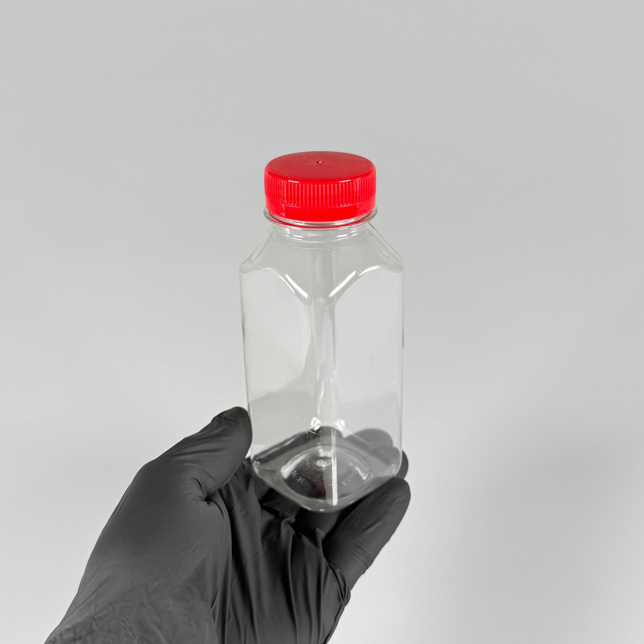 250 CC KÖŞELİ KARE PET ŞİŞE (18,5 GR) - 38 MM GENİŞ AĞIZLI KIRMIZI KİLİTLİ KAPAKLI - 250 ML DETOX, MEYVE SUYU, SMOOTHIE, AYRAN, SÜT, MEŞRUBAT VB İÇİN BOŞ PLASTİK ŞİŞELER - 250 adet