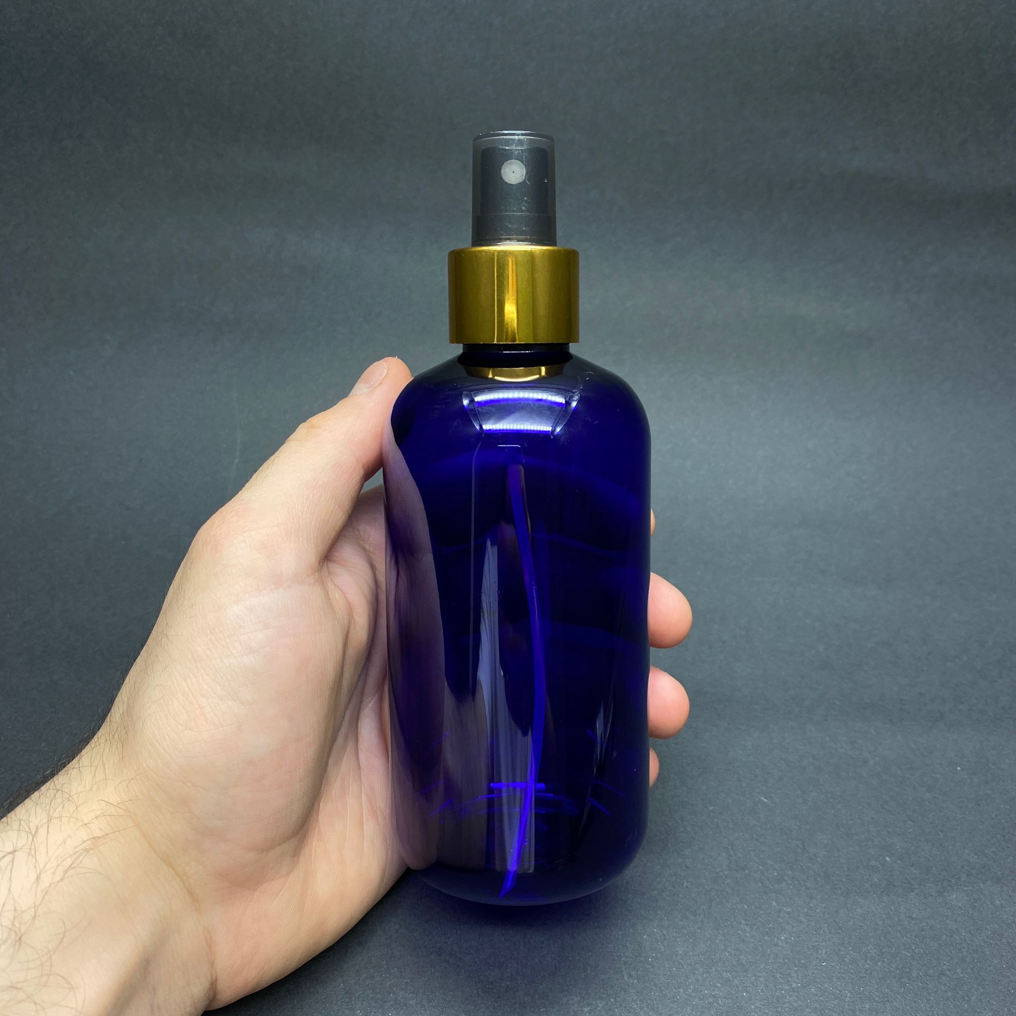 250 CC MAVİ ŞİŞE - GOLD SPREYLİ - 250 ML SPREYLİ PLASTİK ŞİŞE - ZEYNEP MODEL PET ŞİŞE - 270 adet