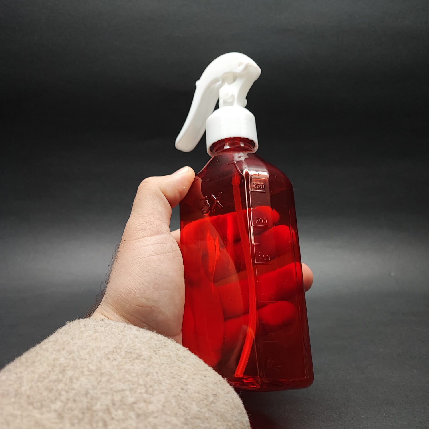 250 CC ÖLÇEKLİ PET ŞİŞE - BEYAZ TRİGER SPREYLİ - 250 ML VE OZ ÖLÇÜLÜ KIRMIZI PET ŞİŞE - 400 adet
