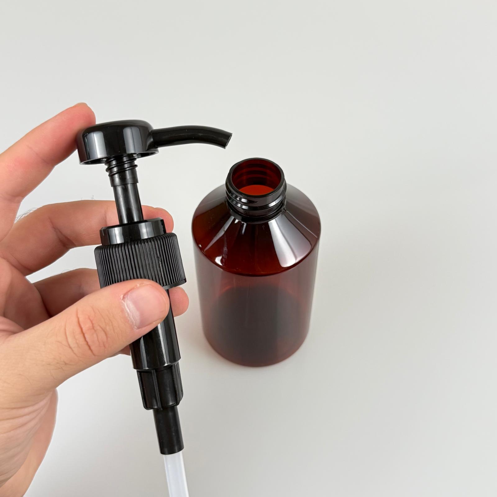 250 CC PET AMBER KÜT MODEL ŞİŞE - SİYAH DOZAJ POMPALI (HER BASMADA 4 CC SIVI ATAR) - 0,25 LT POMPALI ŞİŞE - ŞURUP, ŞAMPUAN, KREM GİBİ YOĞUN KIVAMLI SIVILARDA KULLANILIR - 300 adet