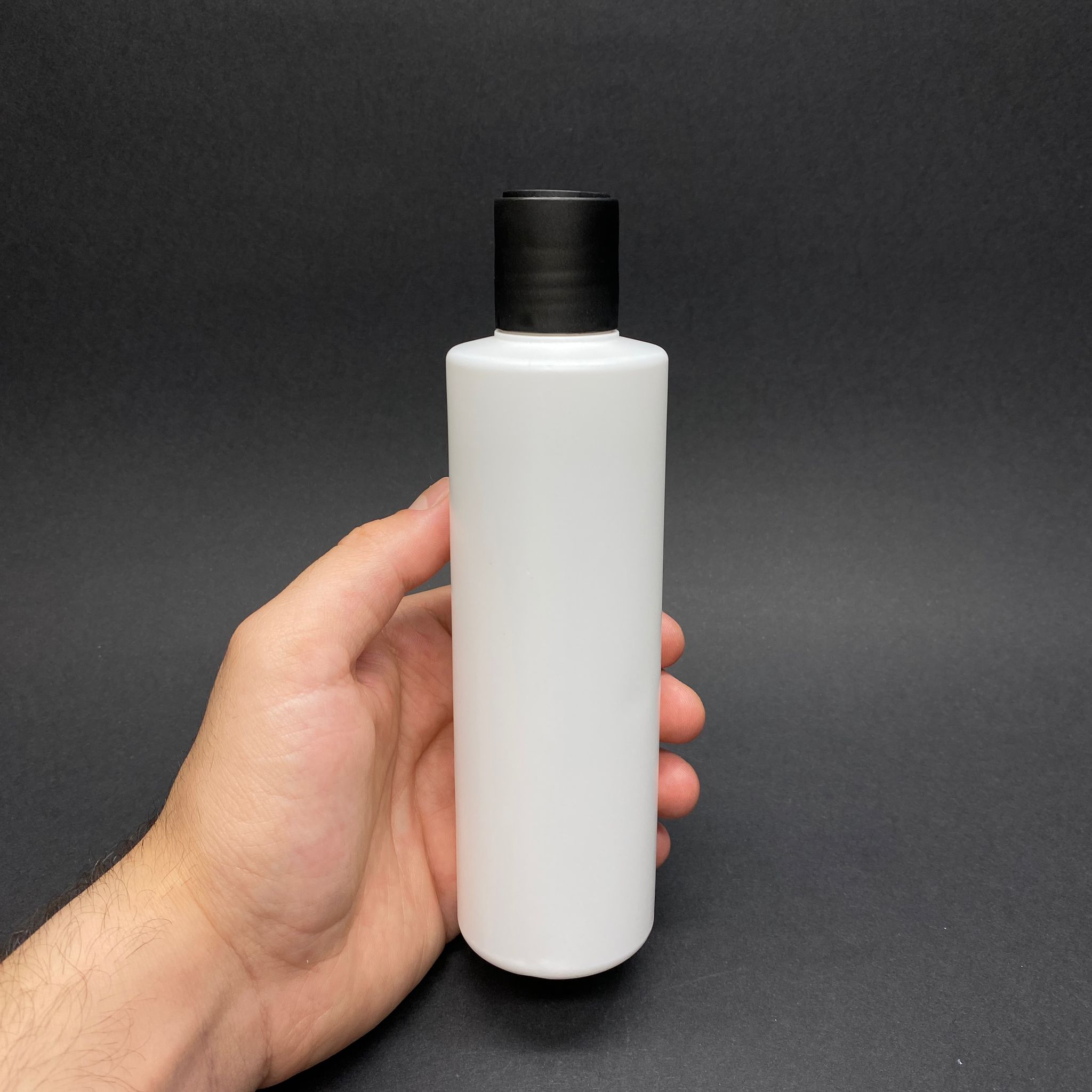 250 CC POLİETİLEN SİLİNDİR UZUN MODEL ŞAMPUAN ŞİŞESİ - BEYAZ - SİYAH DİSKTOP KAPAKLI - 250 ML BOŞ PLASTİK ŞAMPUAN ŞİŞESİ - 300 adet