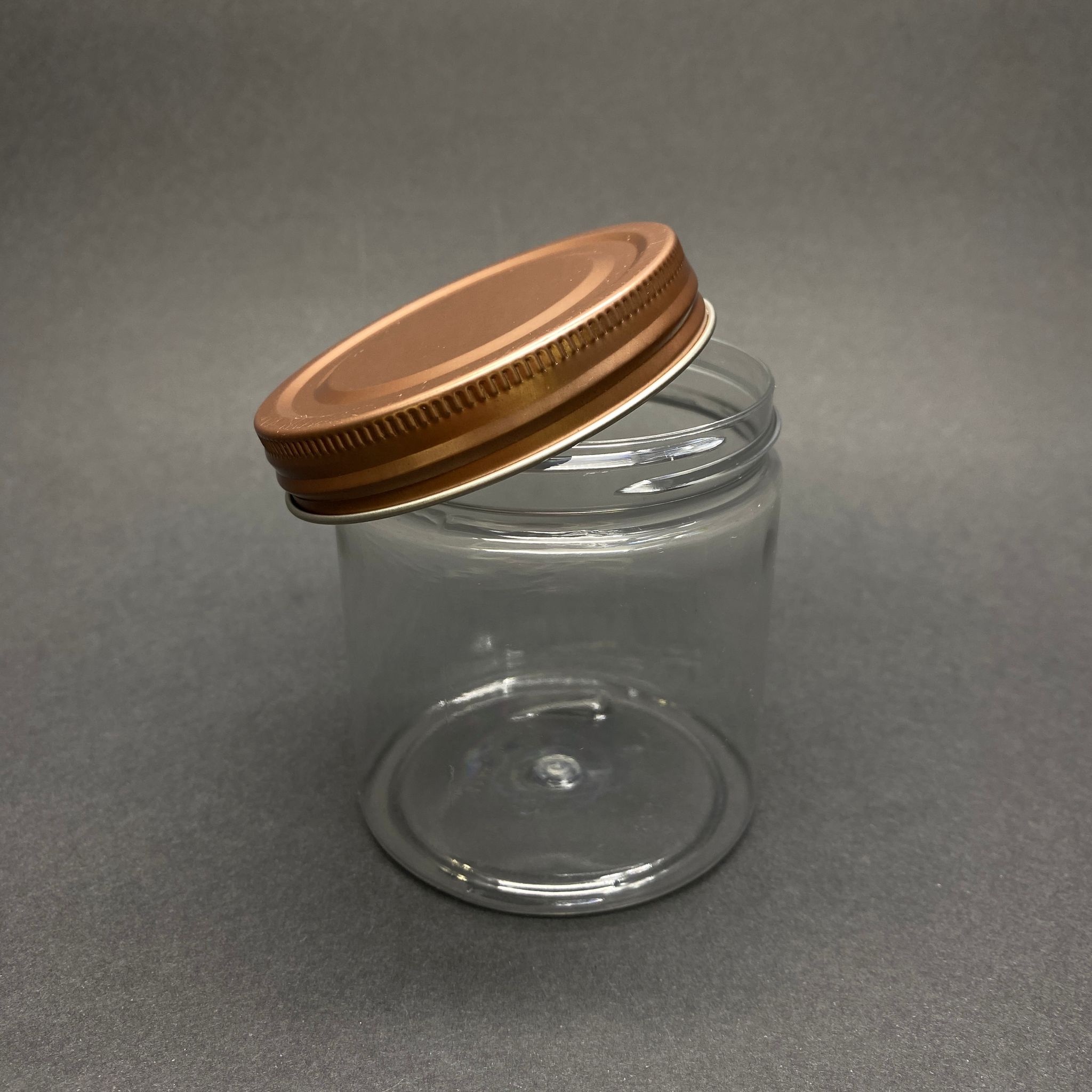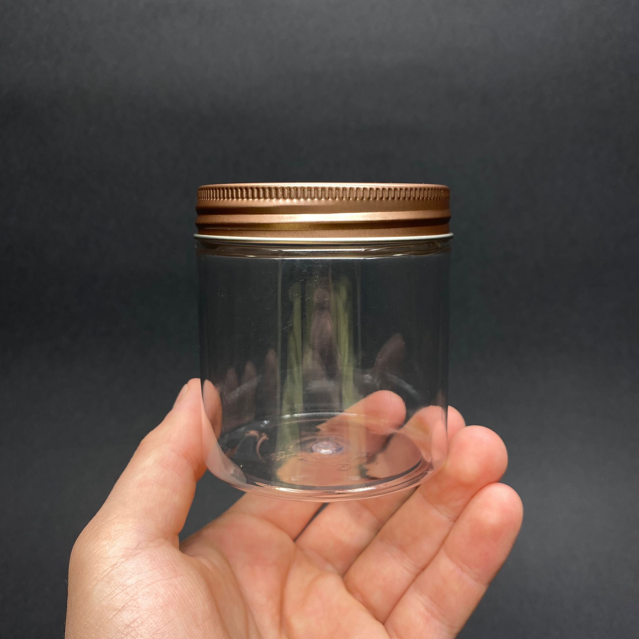 250 CC ŞEFFAF SERT PLASTİK KAVANOZ - BRONZ METAL KAPAKLI - 250 ML METAL KAPAKLI PLASTİK KAVANOZ - KOZMETİK KAVANOZ, GIDA KAVANOZU, KREM KAVANOZU VB. OLARAK KULLANABİLİRSİNİZ - 330 adet