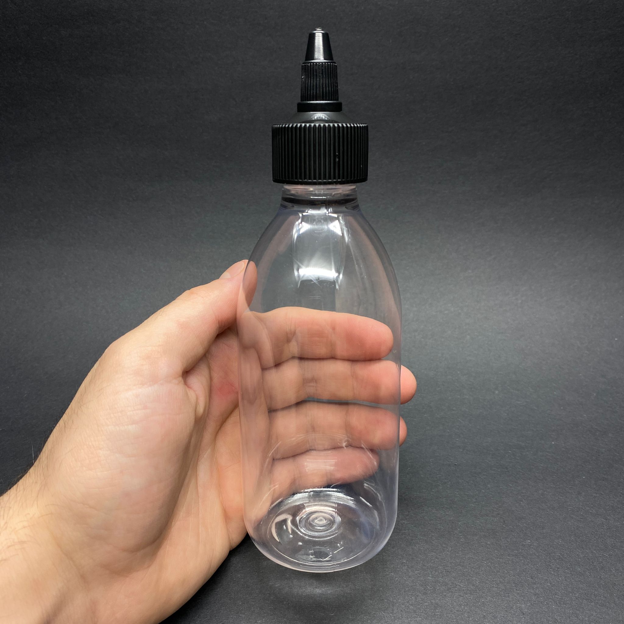250 CC SİVRİ TWİST ASANSÖR KAPAKLI ŞEFFAF PET ŞİŞE - 250 ML AKITICI SİYAH KAPAKLI PET ŞİŞE - 90 adet