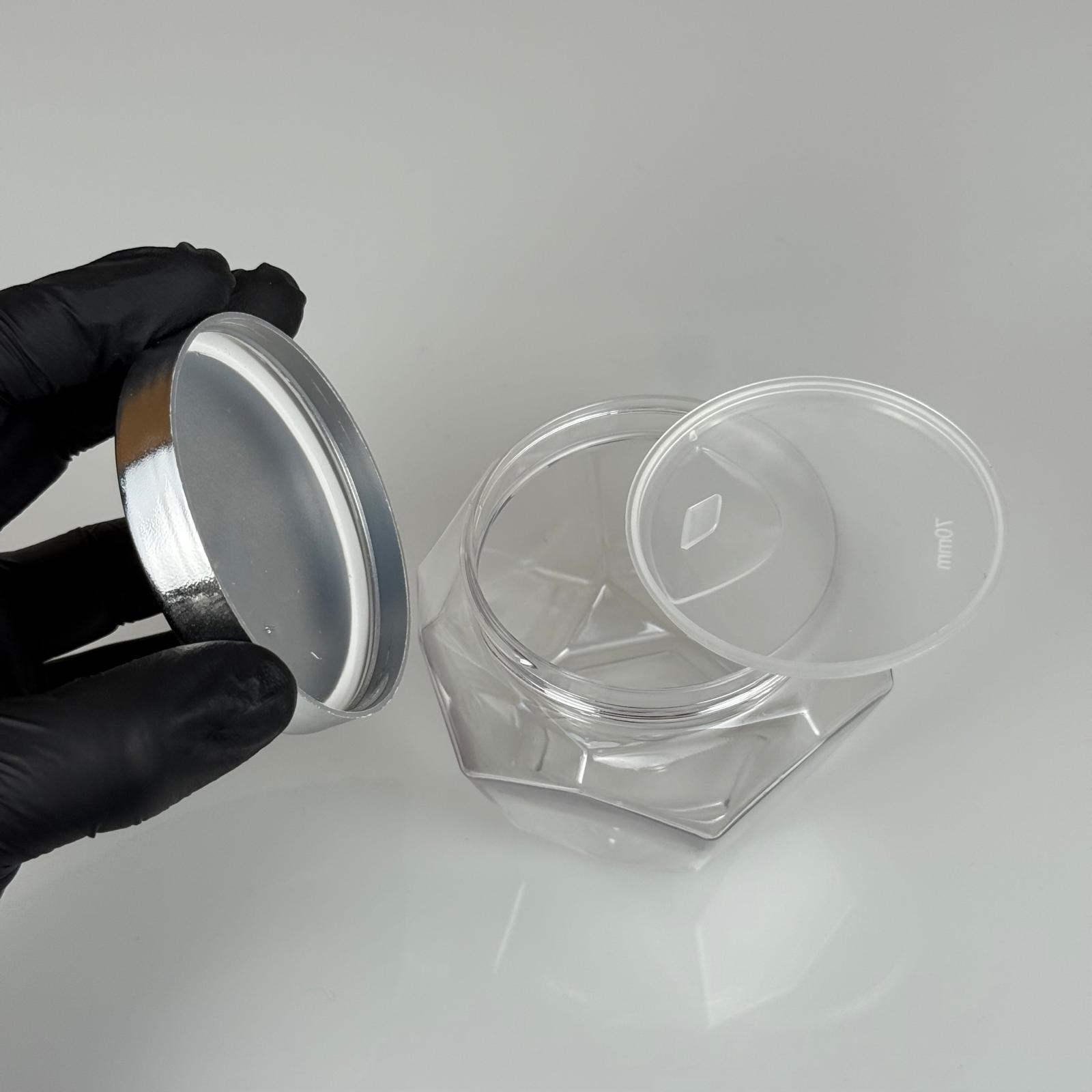 250 ML SERT PET ALTIGEN KAVANOZ + GÜMÜŞ KAPLAMA PLASTİK KAPAK + İÇ TIPA - 250 CC KALIN ŞEFFAF PLASTİK KAVANOZ GÜMÜŞ KAPLAMALI PLASTİK KAPAKLI İÇ TIPALI TAKIM - KREM KAVANOZLARI - 320 adet