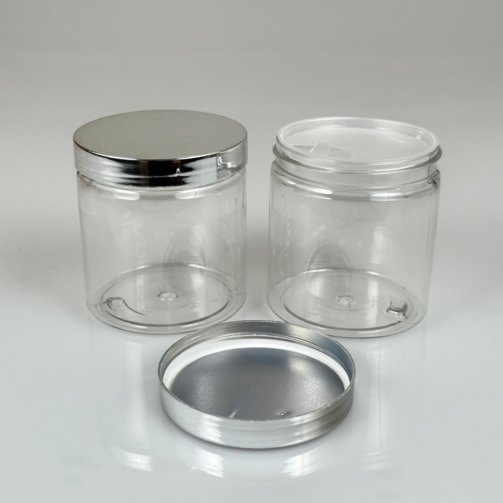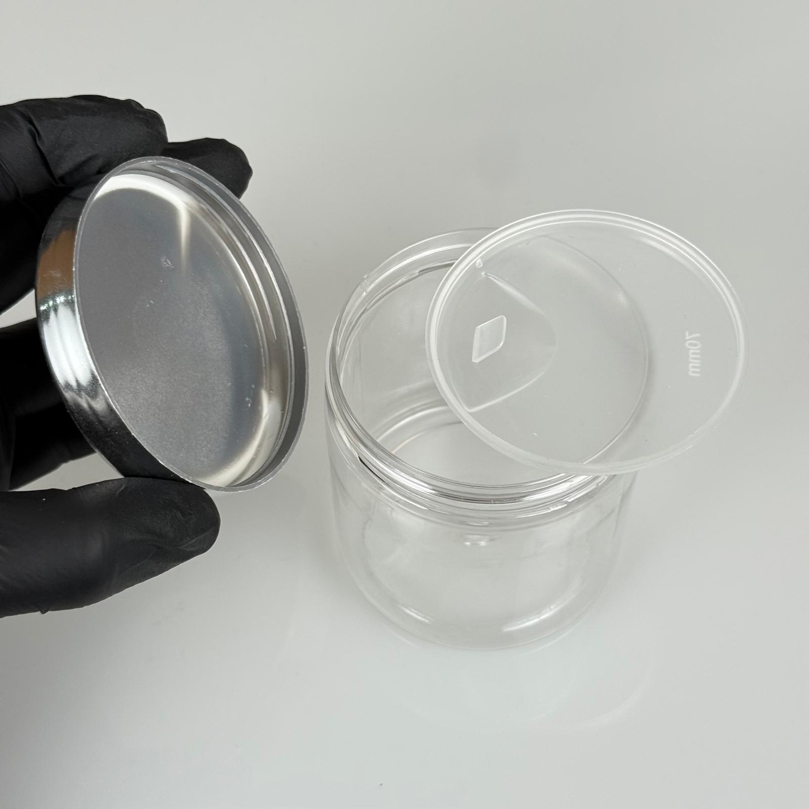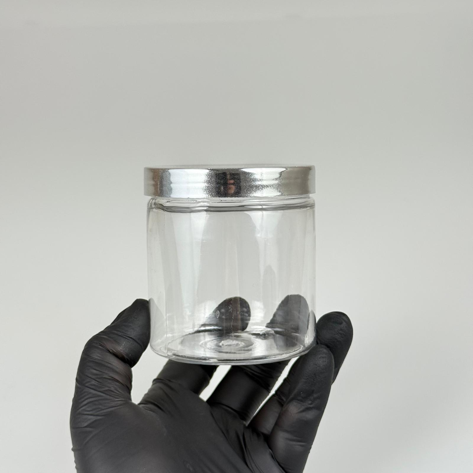 250 ML SERT PET KAVANOZ + GÜMÜŞ KAPLAMALI PLASTİK KAPAK + İÇ TIPA - 250 CC KALIN ŞEFFAF PLASTİK KAVANOZ GÜMÜŞ KAPLAMALI PLASTİK KAPAKLI İÇ TIPALI TAKIM - KREM KAVANOZLARI - 330 adet