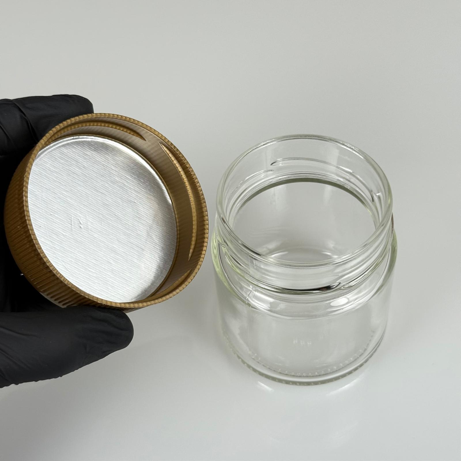 255 CC ALMAN KAVANOZ - GOLD PLASTİK ALÜMİNYUM FOLYO CONTALI İNDİKSİYON KAPAKLI - 255 ML DERİN KAPAKLI CAM KAVANOZ - ÇİKOLATA , FINDIK EZMESİ , KREMA VB İÇİN CAM KAVANOZLAR - 84 adet