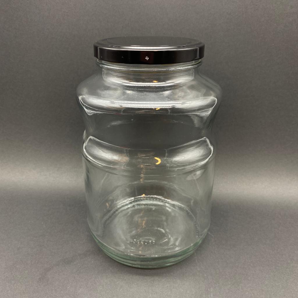 2650 CC BOĞUMLU CAM KAVANOZ - SİYAH METAL KAPAKLI - 2650 ML BOĞUMLU CAM KAVANOZ - TURŞU VE ZEYTİN KURUMUNDA KULLANILABİLİR - 12 adet