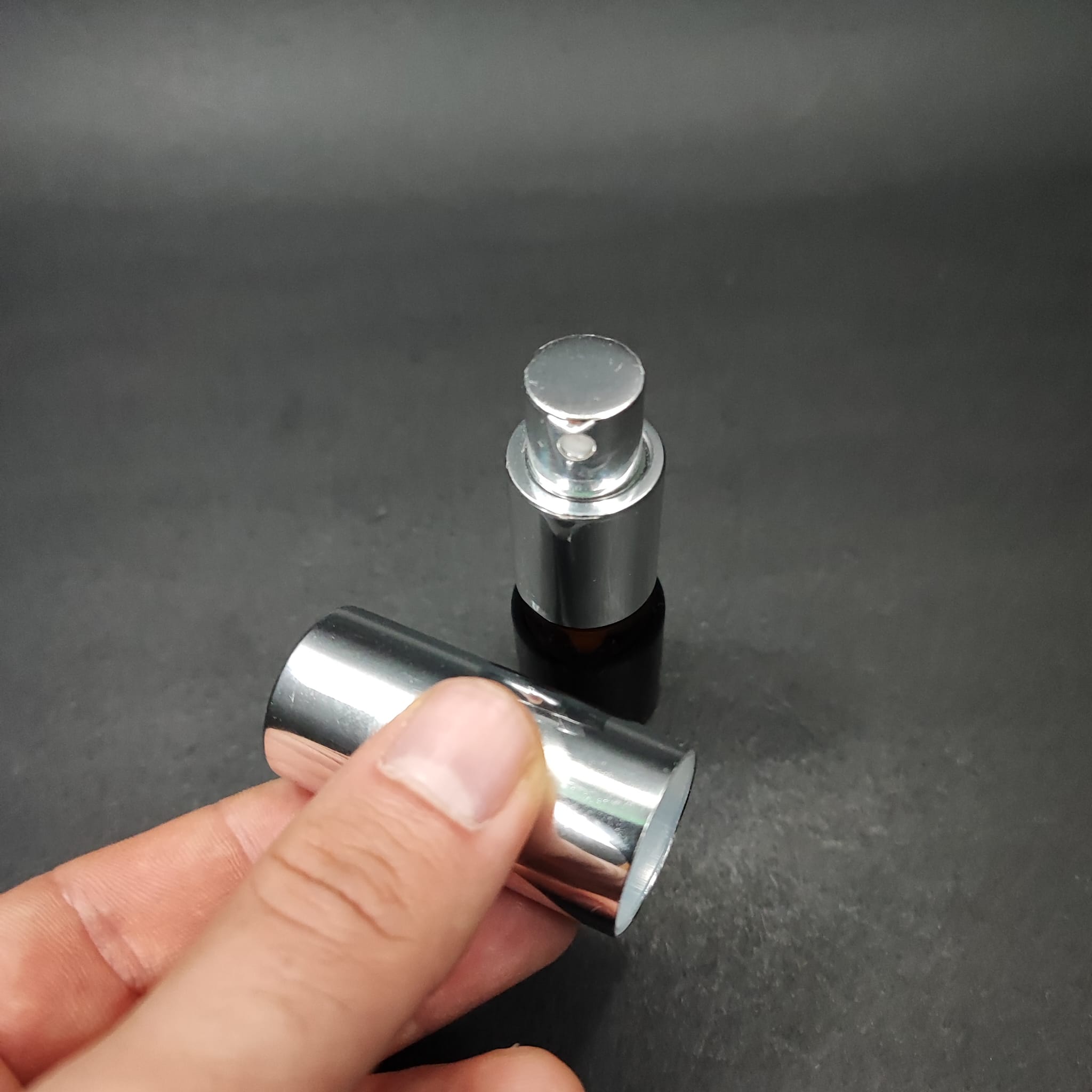 3 ML LÜKS VİDALI VALF ÇEVİRME PARFÜM ŞİŞELERİ - 3 CC AMBER CAM ŞİŞE - GÜMÜŞ METAL SPREYLİ KAPAKLI SET - 336 adet