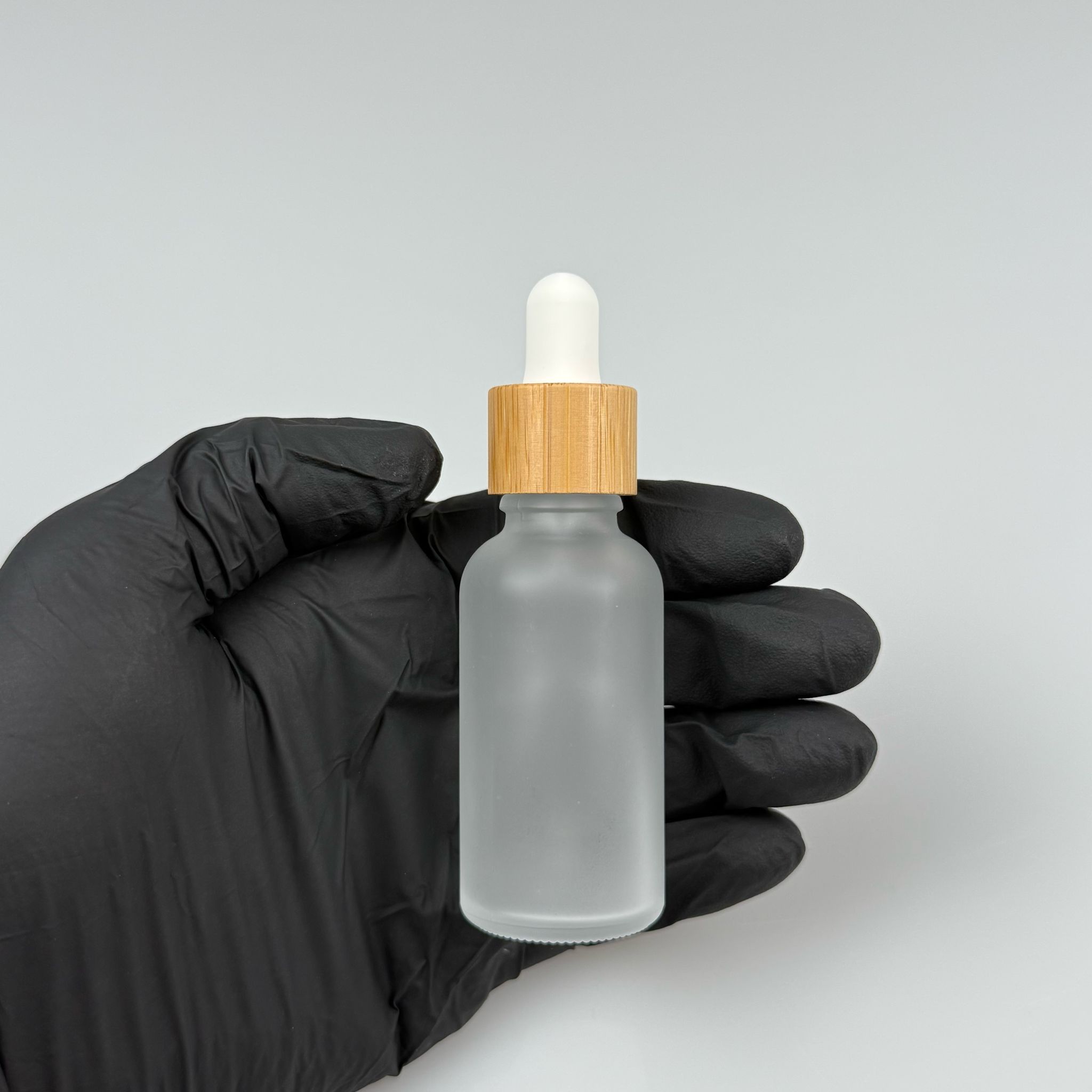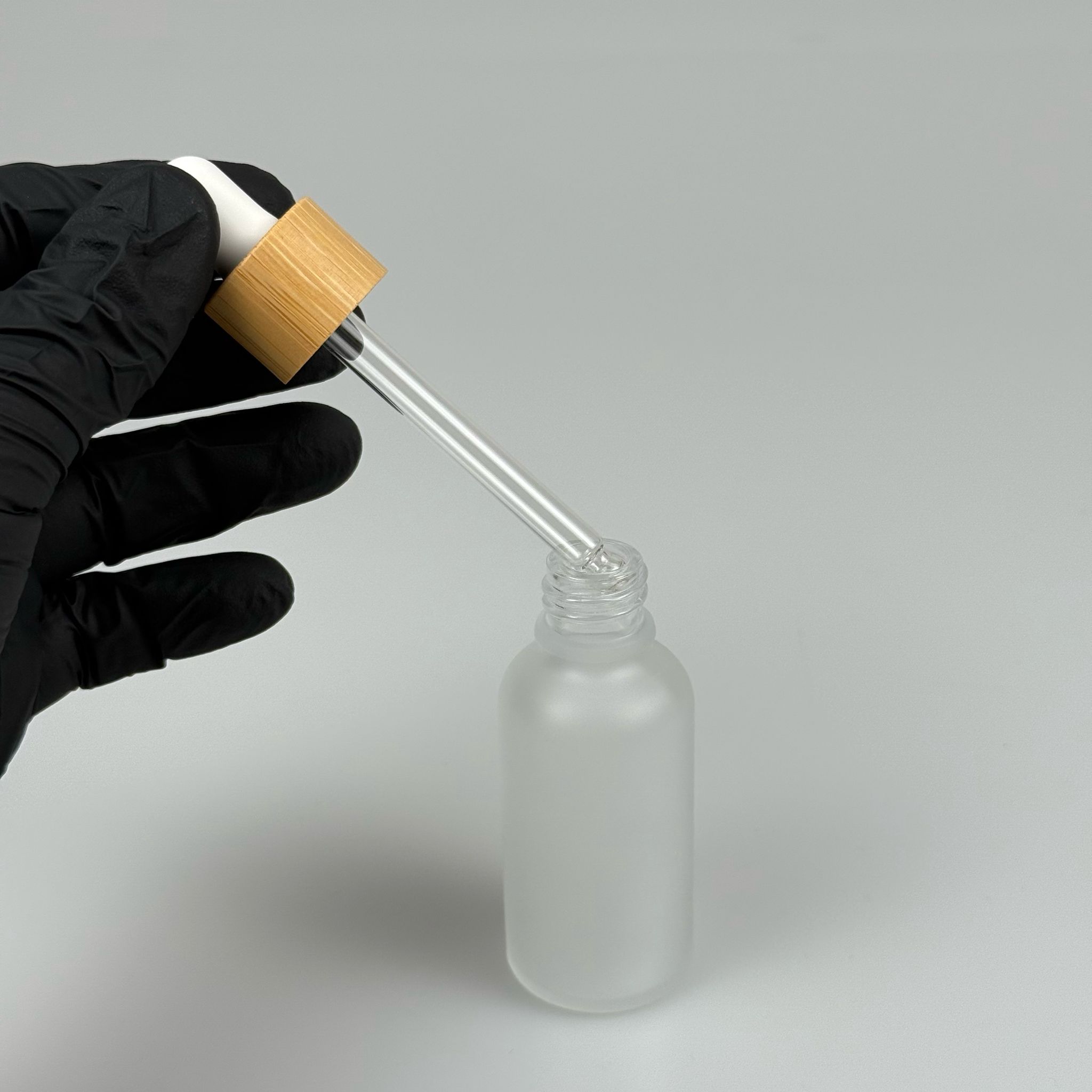 30 CC BUZLU CAM DAMLALIKLI ŞİŞE - BEYAZ EMZİK - BAMBU AHŞAP KAPAK - 30 ML BAMBU KAPAKLI CAM DAMLALIKLI ŞİŞE - 660 adet