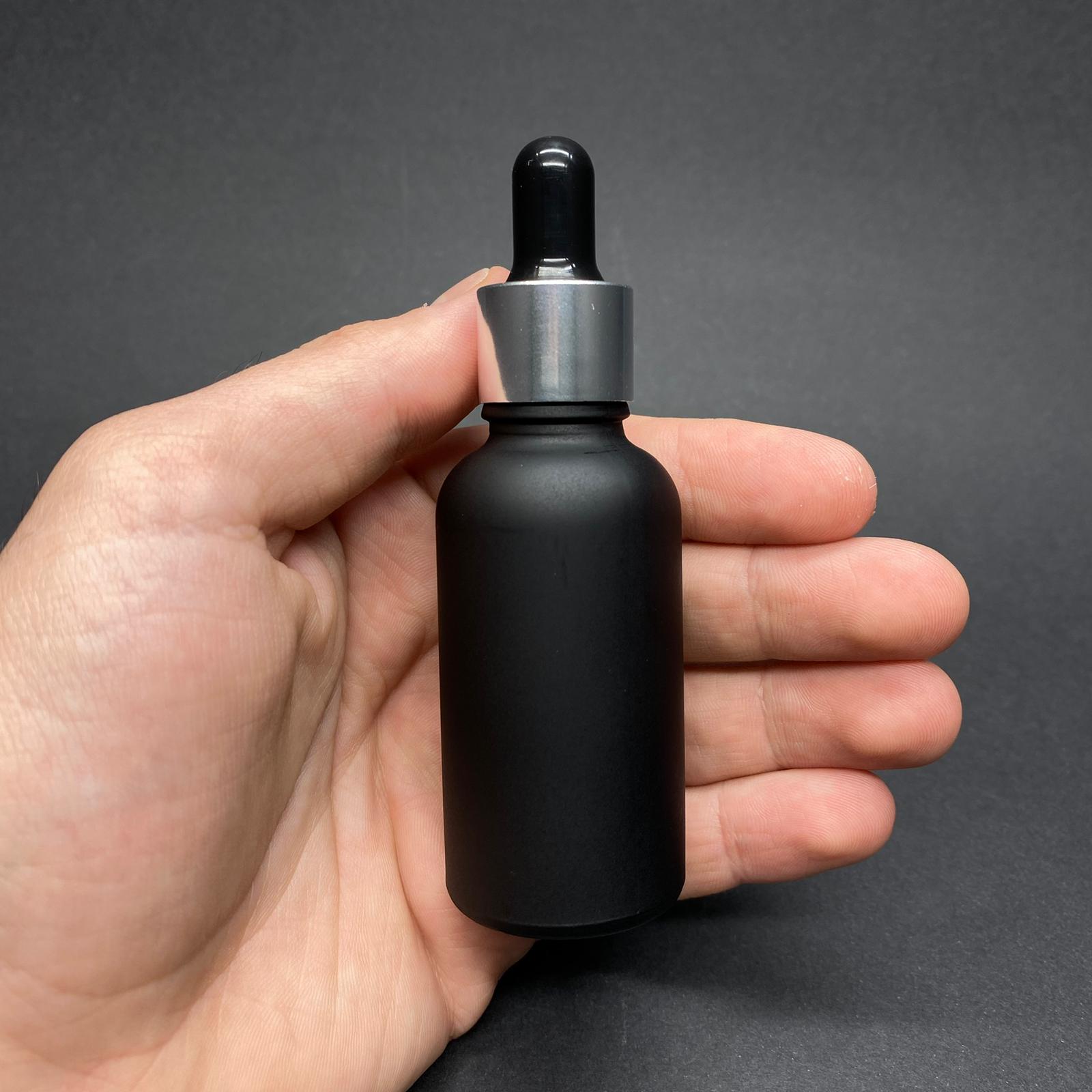 30 CC MAT SİYAH BOYALI CAM DAMLALIKLI ŞİŞE - SİYAH EMZİK - GÜMÜŞ METAL KAPAK - 30 ML CAM DAMLALIKLI ŞİŞE - 321 adet