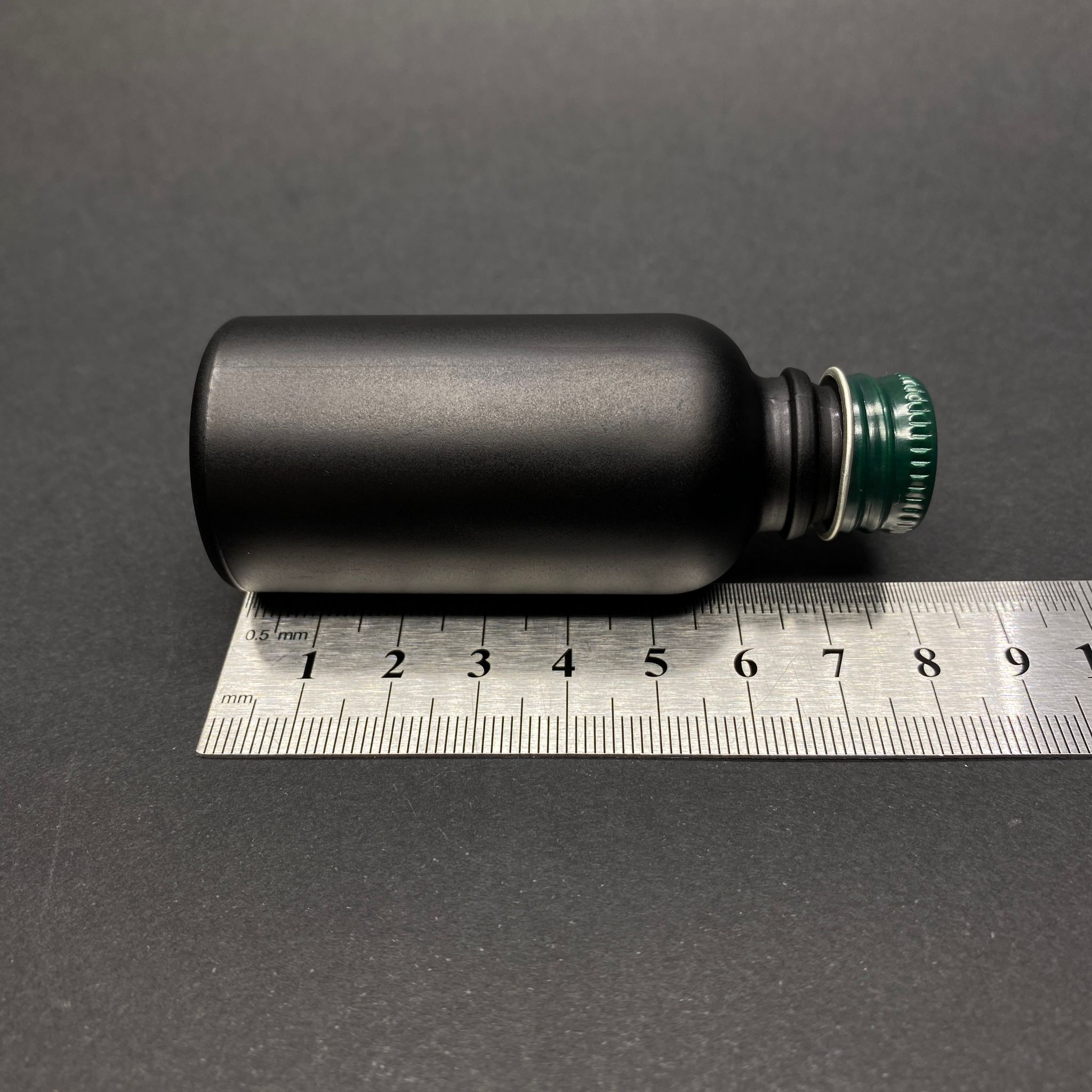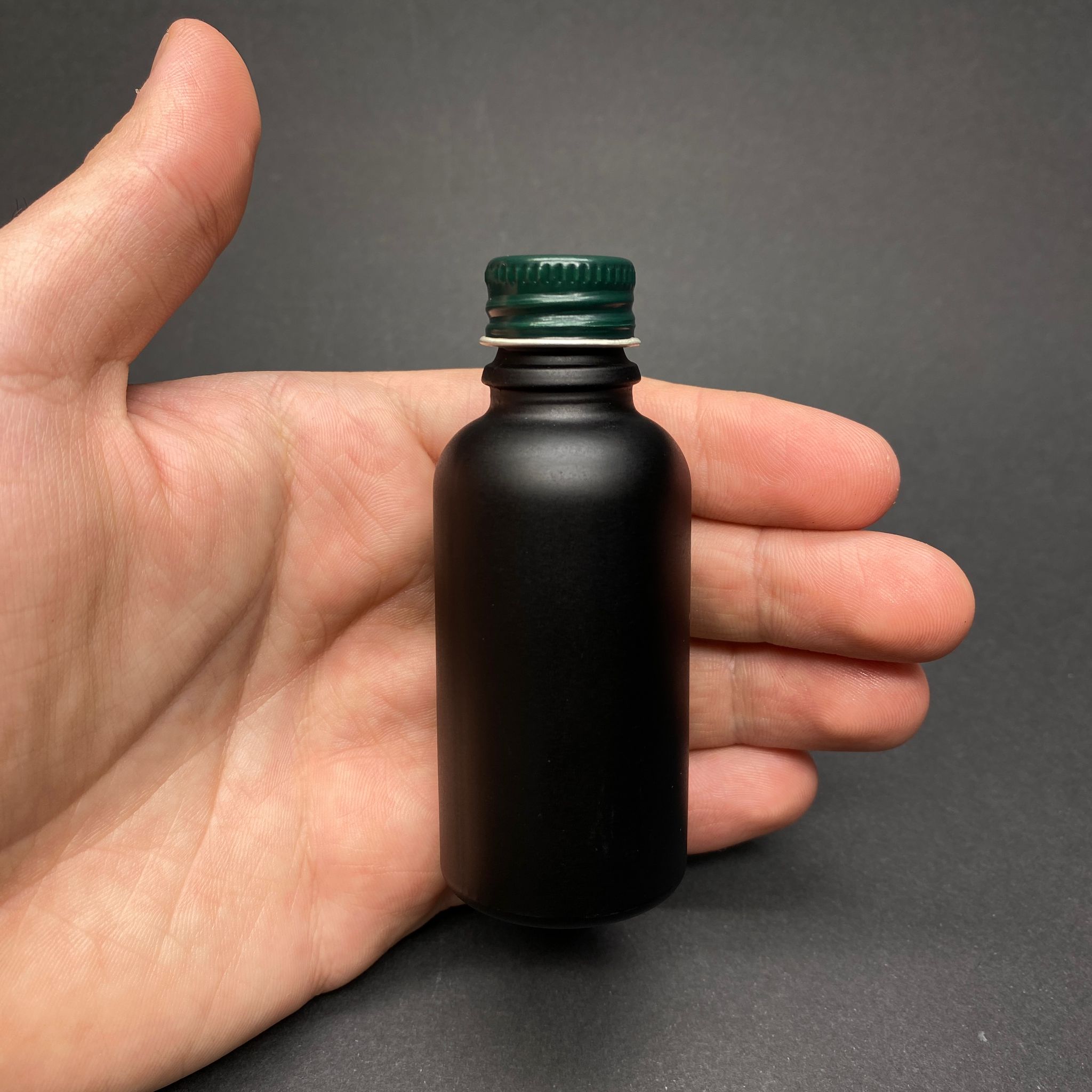 30 CC MAT SİYAH BOYALI CAM ŞİŞE - METAL YEŞİL CONTALI KAPAKLI - 30 ML CAM ŞİŞE - MAT SİYAH RENK - 321 adet