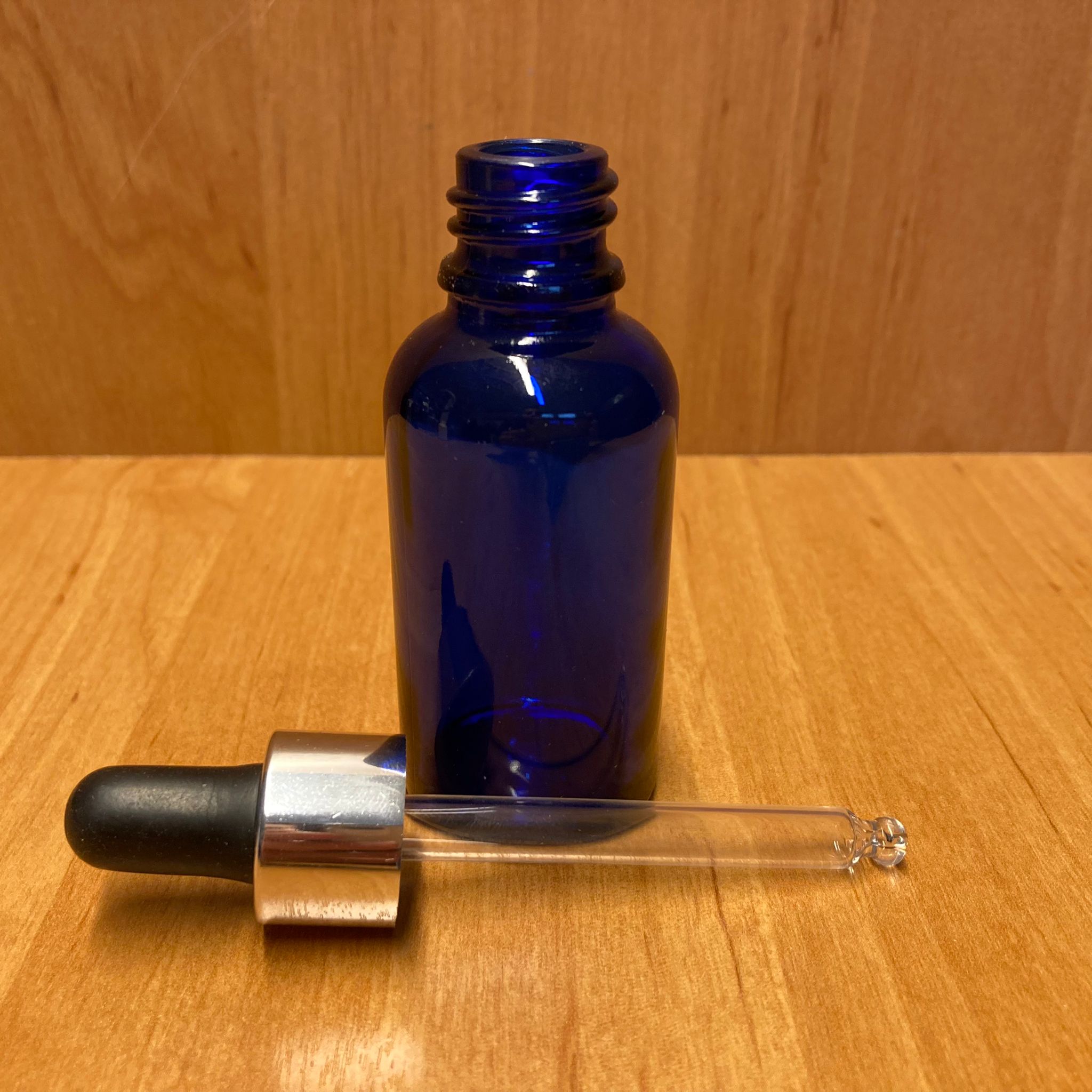 30 CC MAVİ CAM DAMLALIKLI ŞİŞE - SİYAH EMZİK - GÜMÜŞ METALİK KAPAK - 30 ML MAVİ CAM DAMLALIKLI ŞİŞE - 110 adet