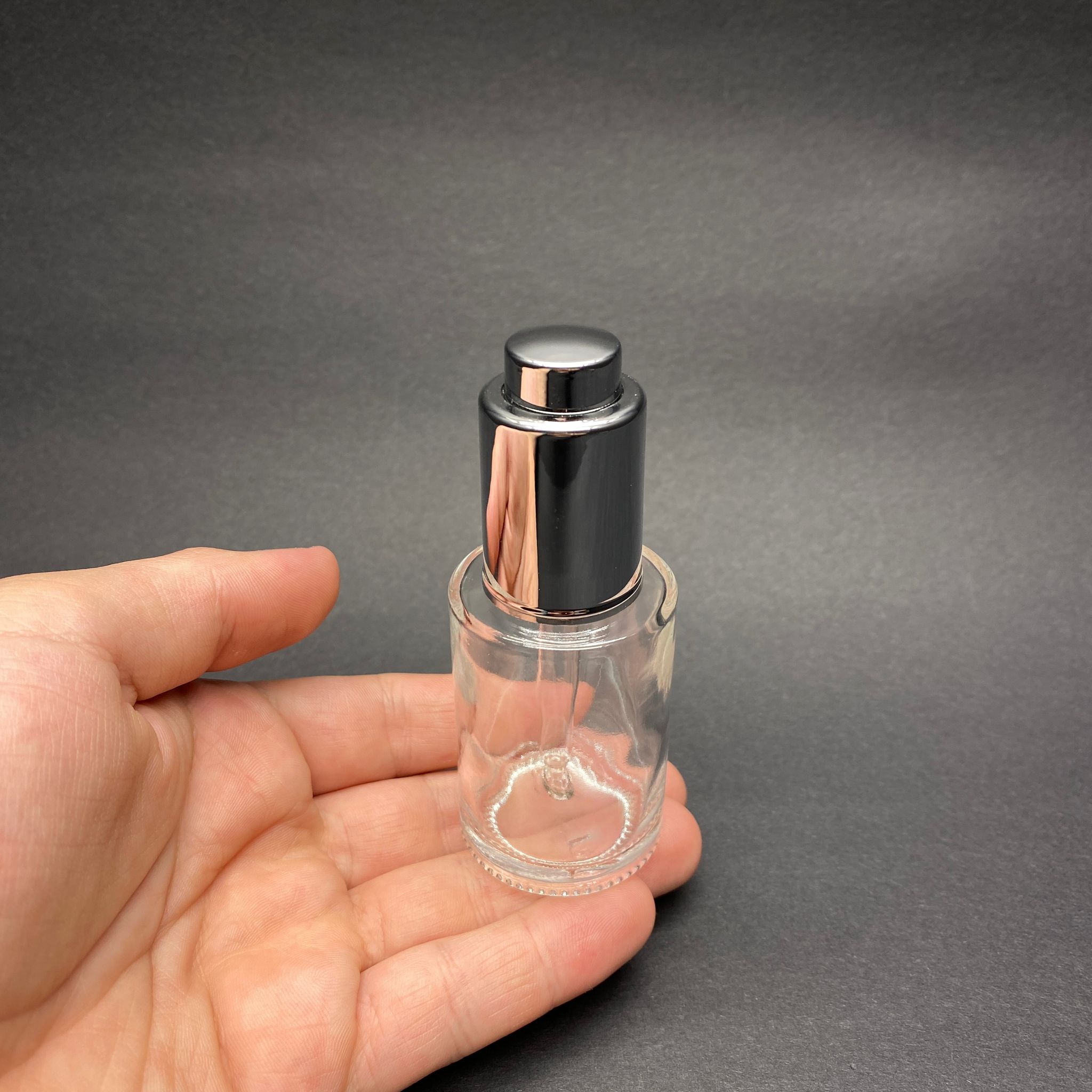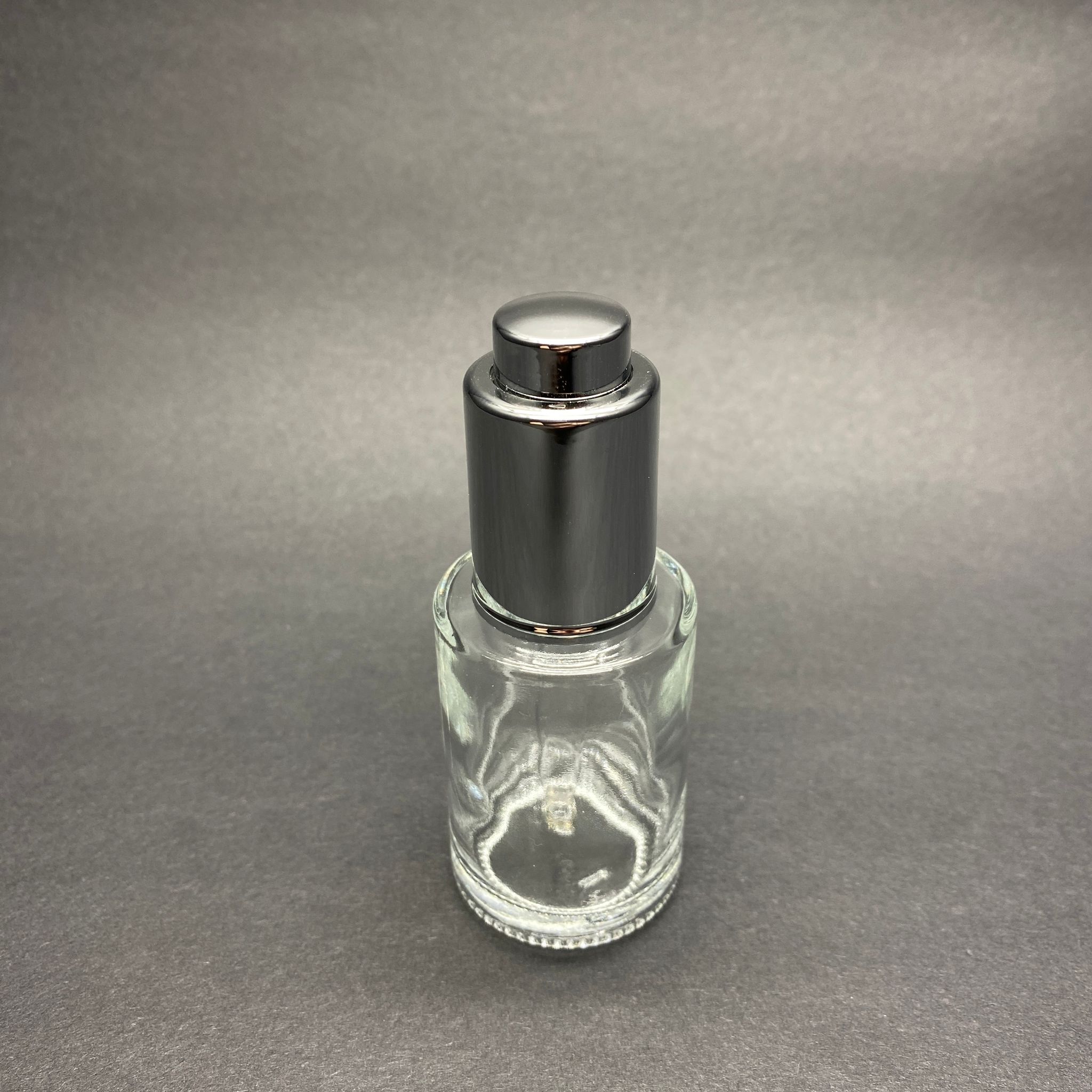 30 CC OMUZLU ŞEFFAF CAM ŞİŞE - LÜX GÜMÜŞ BASMALI CAM DAMLALIKLI TAKIM (DAMLALIĞIN İÇİNDE SIZDIRMAZ CONTA MEVCUTTUR) - 30 ML KÜT BOYUNLU CAM SERUM ŞİŞESİCUTTUR) - 30 ML KÜT BOYUNLU CAM SERUM ŞİŞESİ - 240 adet