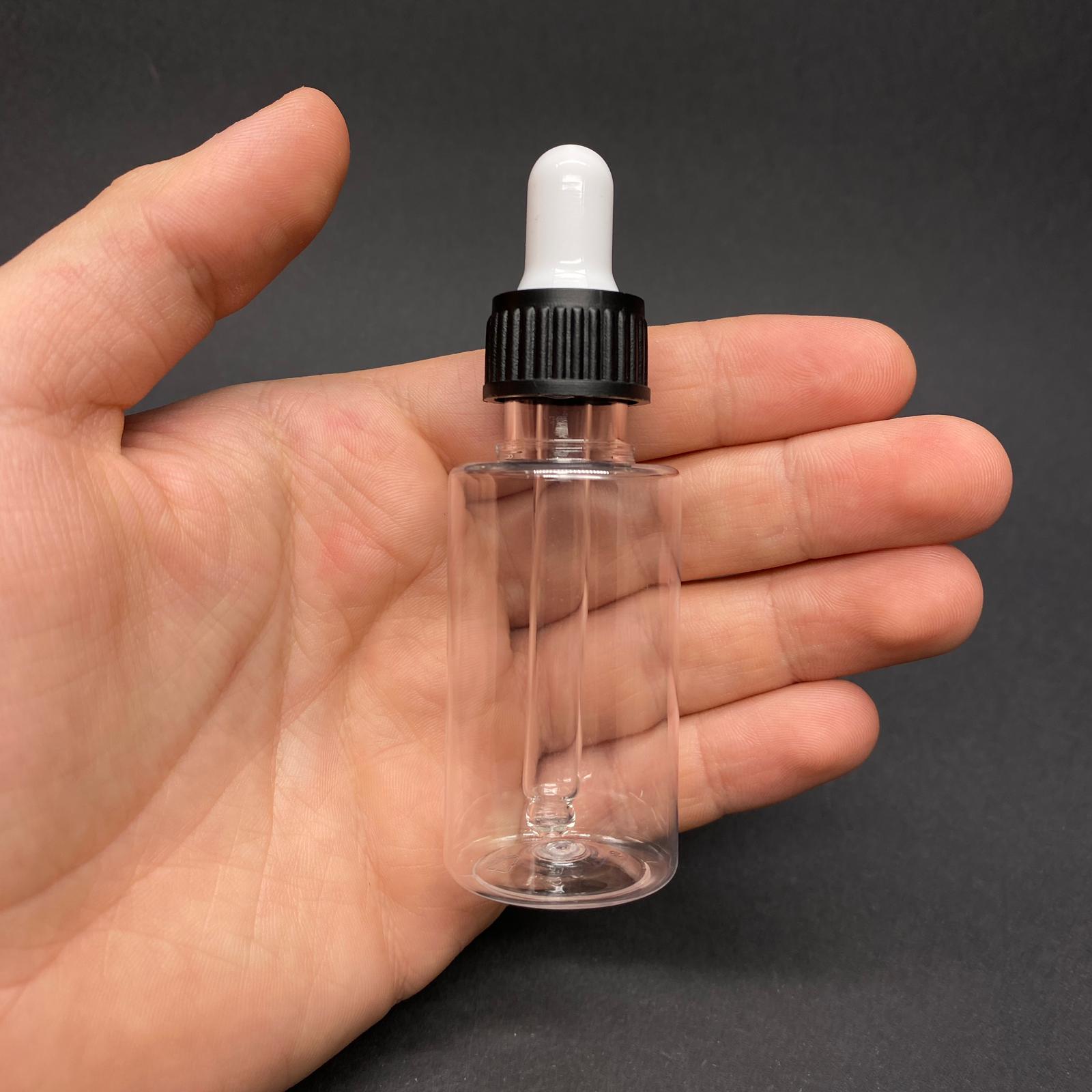 30 CC PET ŞİŞE SİLİNDİR KISA MODEL - CAM DAMLALIKLI (BEYAZ EMZİK, SİYAH DELİKLİ KAPAK, CAM PİPET) - 30 ML CAM DAMLALIKLI PET ŞİŞE - 1000 adet
