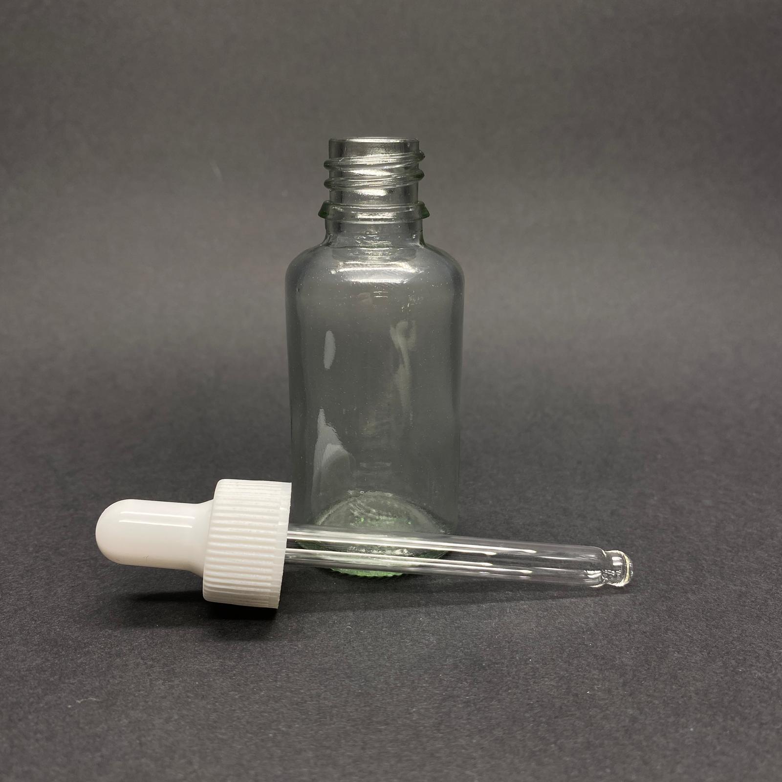 30 CC ŞEFFAF CAM DAMLALIKLI ŞİŞE - BEYAZ EMZİK - BEYAZ PLASTİK KAPAK - 30 ML SAYDAM CAM DAMLALIKLI ŞİŞE - 30 ML SERUM ŞİŞESİ - 330 adet