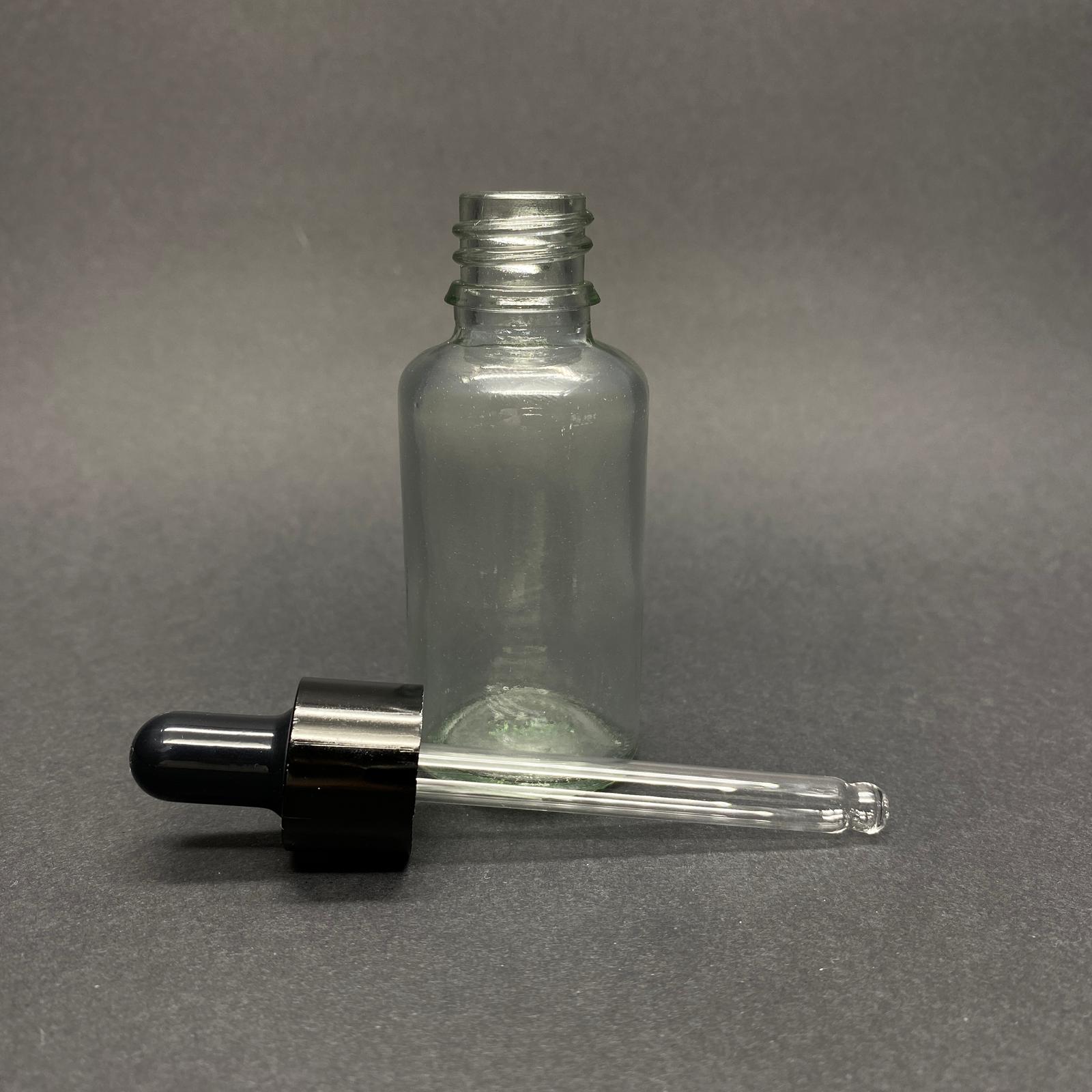 30 CC ŞEFFAF CAM DAMLALIKLI ŞİŞE - SİYAH EMZİK - SİYAH METALİK KAPAK - 30 ML SAYDAM CAM DAMLALIKLI ŞİŞE - 30 ML SERUM ŞİŞESİ - 330 adet