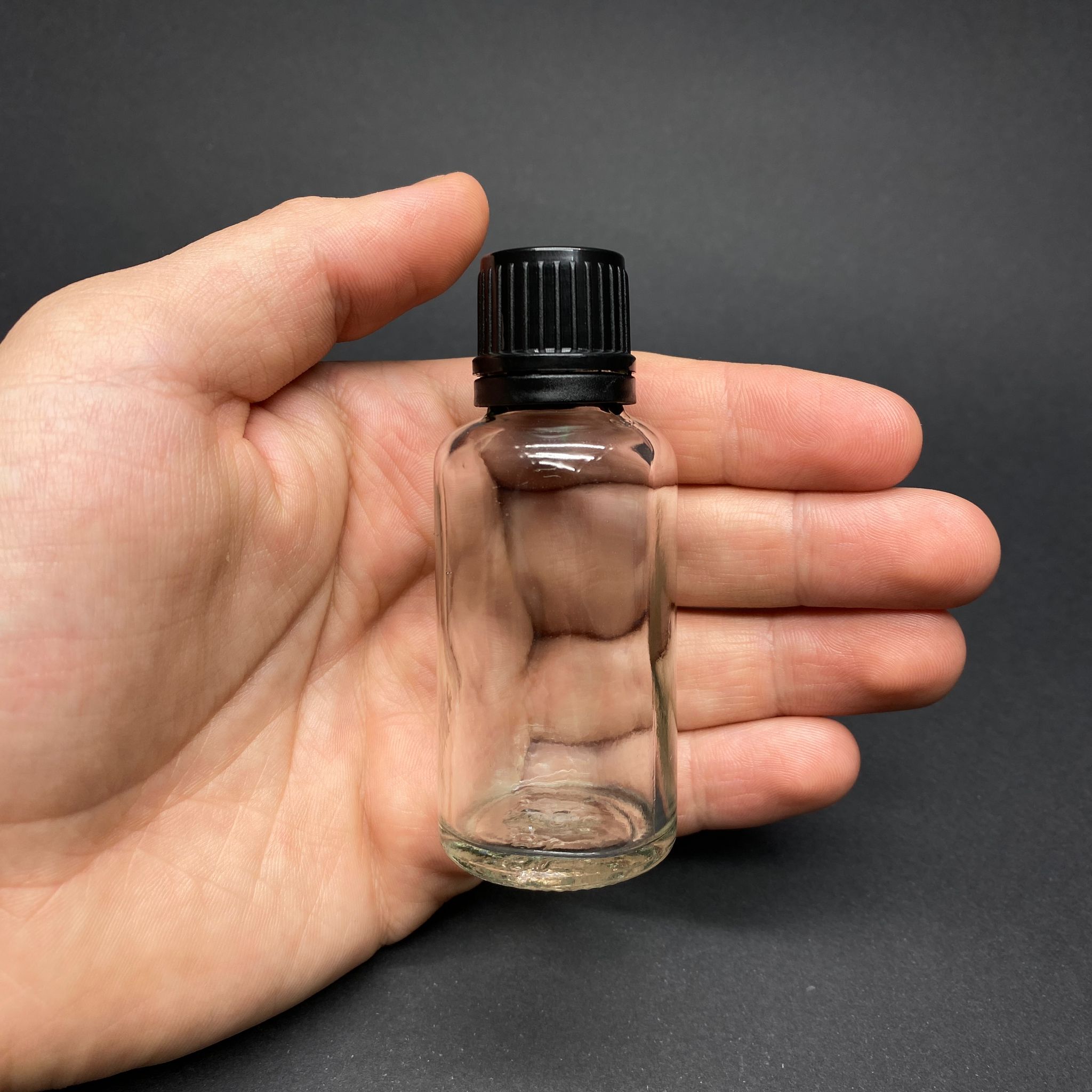 30 CC ŞEFFAF İÇTEN DAMLALIKLI (OPSİYONEL DAMLALIK) - SİYAH KİLİTLİ KAPAKLI CAM ŞİŞE - 30 ML SAYDAM KOLONYA TIPALI CAM ŞİŞE - 330 adet