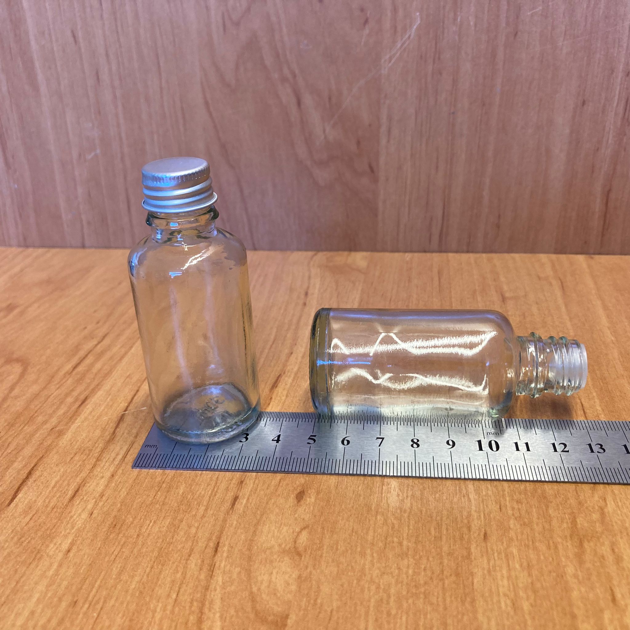 30 CC ŞEFFAF İÇTEN DAMLALIKLI - GÜMÜŞ METAL KAPAKLI CAM ŞİŞE - 30 ML KOLONYA TIPALI CAM ŞİŞE - 330 adet