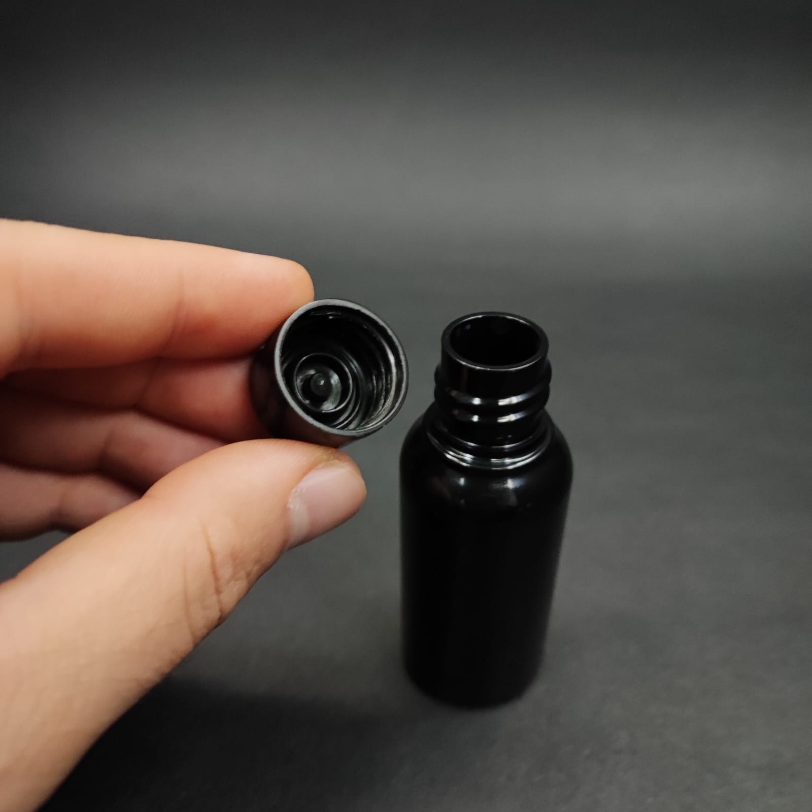 30 CC SİYAH PLASTİK KISA ŞİŞE + KENDİNDEN CONTALI SIZDIRMAZ SİYAH KAPAK - 30 ML KAPAKLI PET ŞİŞE - 1800 adet