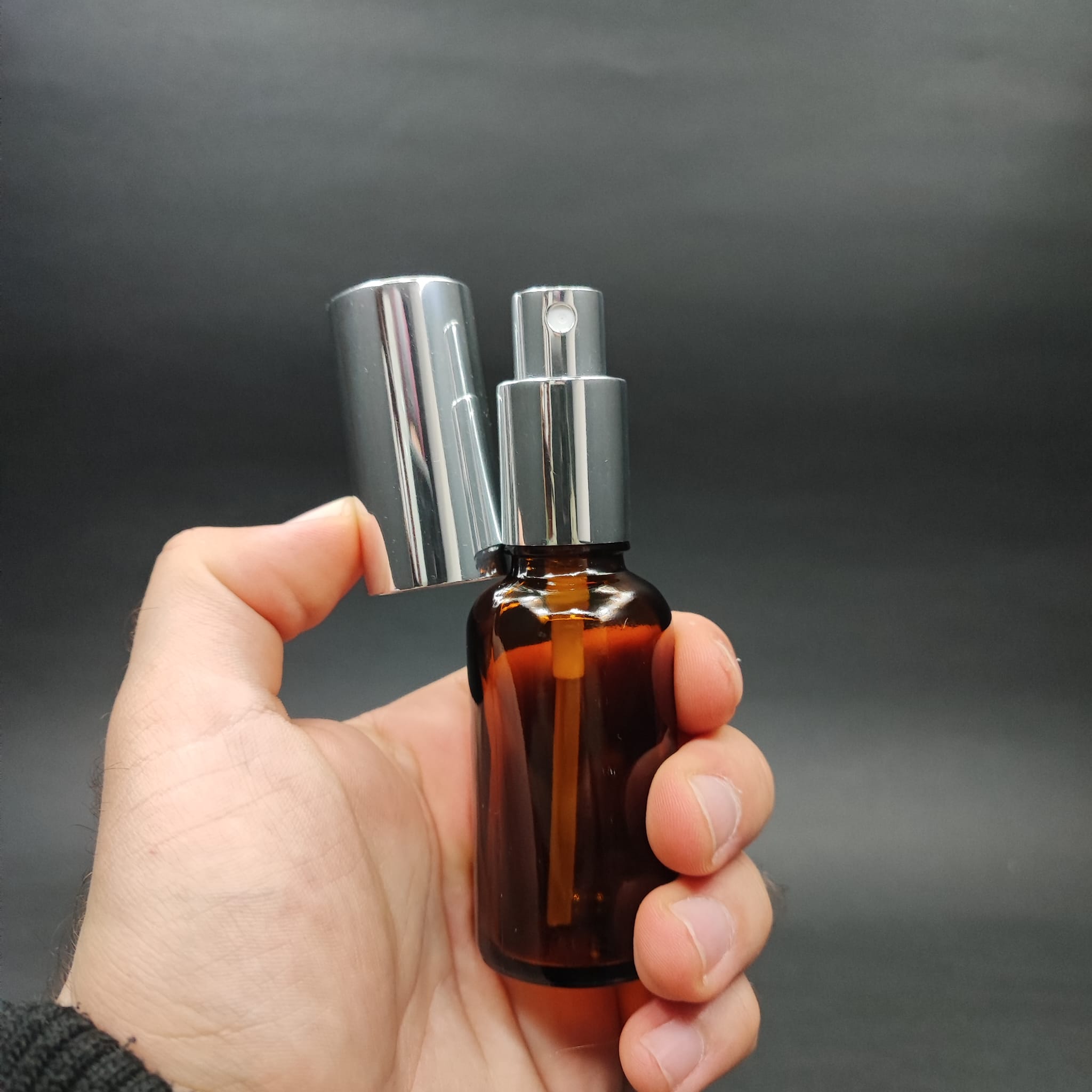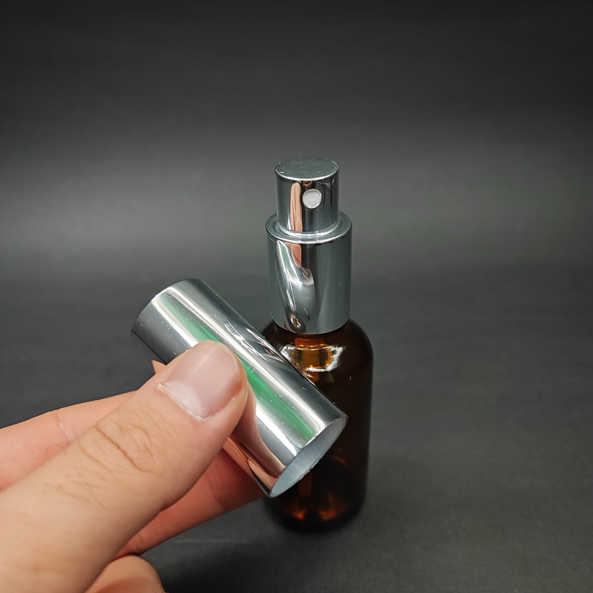 30 ML LÜKS VİDALI VALF ÇEVİRME PARFÜM ŞİŞELERİ - 30 CC AMBER CAM ŞİŞE - GÜMÜŞ METAL SPREYLİ KAPAKLI SET - 660 adet