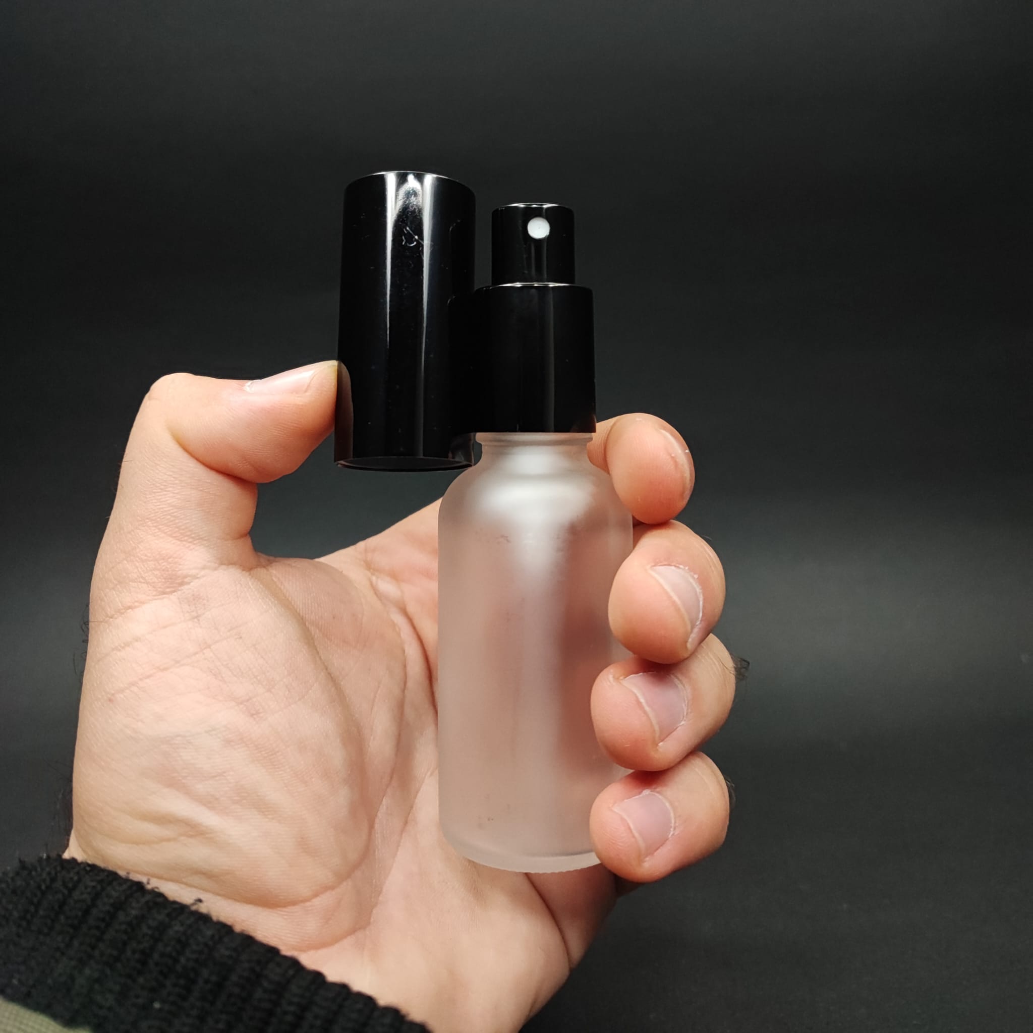 30 CC BUZLU CAM ŞİŞE - SİYAH METALE METAL SPREYLİ - 30 ML BUZLU CAM PARFÜM ŞİŞE - BUZLU CAM LÜX PARFÜM ŞİŞESİ - TEKRAR DOLDURULABİLİR - 660 adet