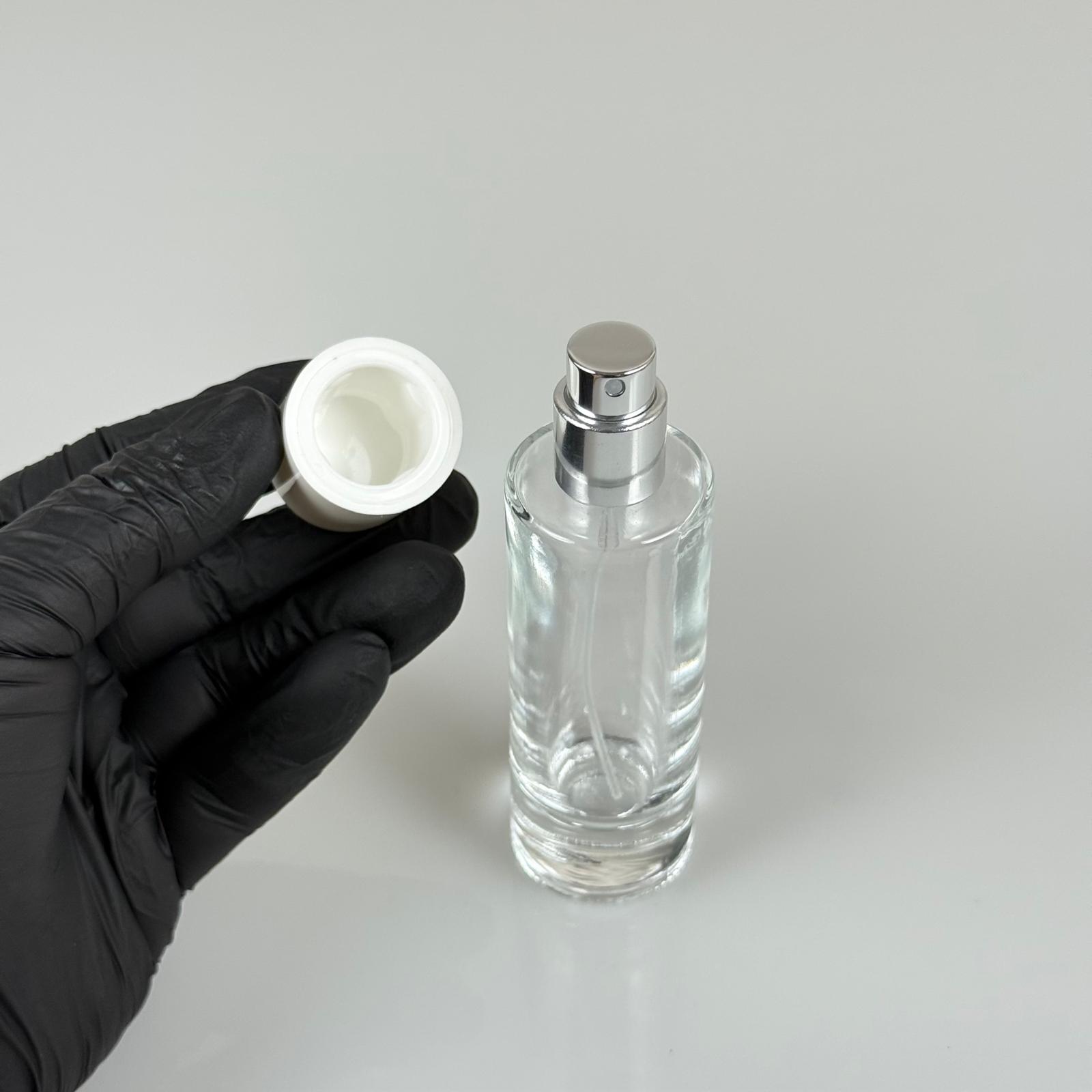 30 ML SİLİNDİR UZUN MODEL PARFÜM ŞİŞESİ - GÜMÜŞ METAL SPREYLİ + BEYAZ PLASTİK KAPAKLI (AĞIZ 15 MM GEÇME KOLAY KAPAMA) - 210 adet