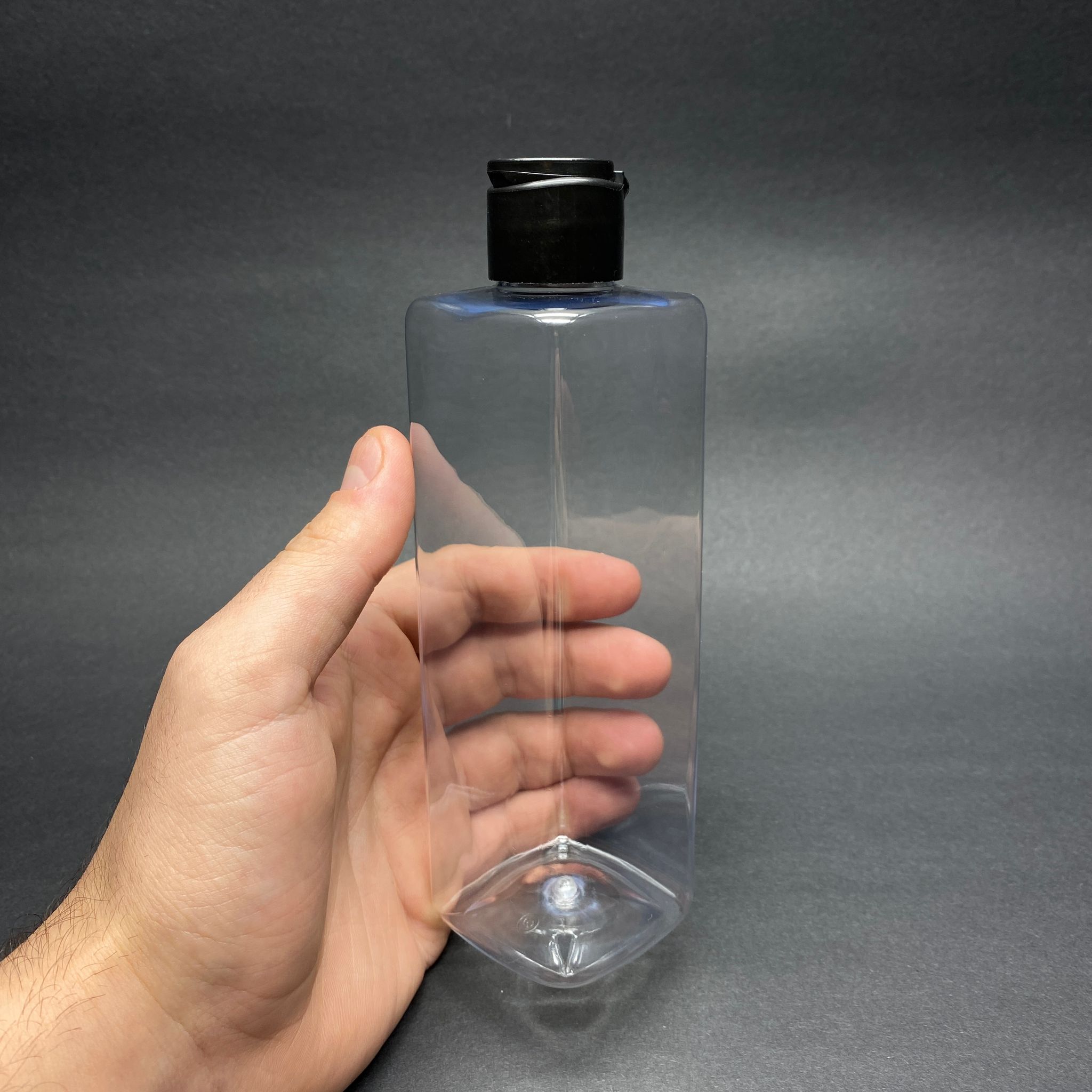 300 CC KARE PET ŞİŞE (31 GR) - AKITICILI SİYAH FLİPTOP KAPAKLI - 300 ML KÖŞELİ PLASTİK ŞİŞE - 364 adet