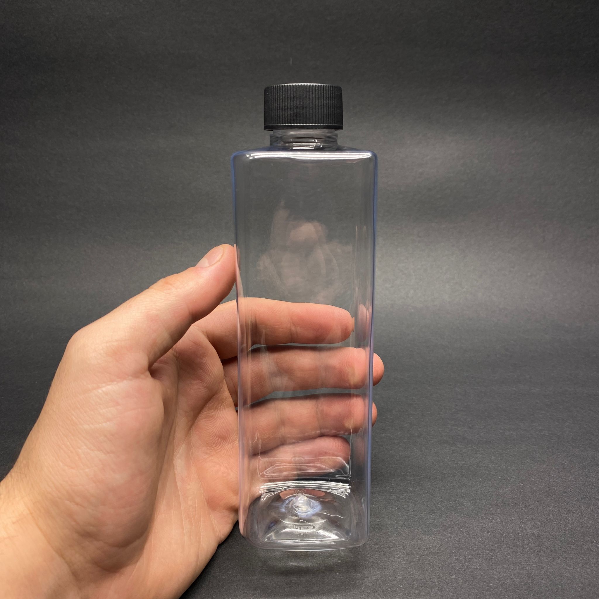 300 CC KARE PET ŞİŞE (31 GR) - CONTALI SİYAH KAPAKLI - 300 ML KÖŞELİ PLASTİK ŞİŞE - 364 adet