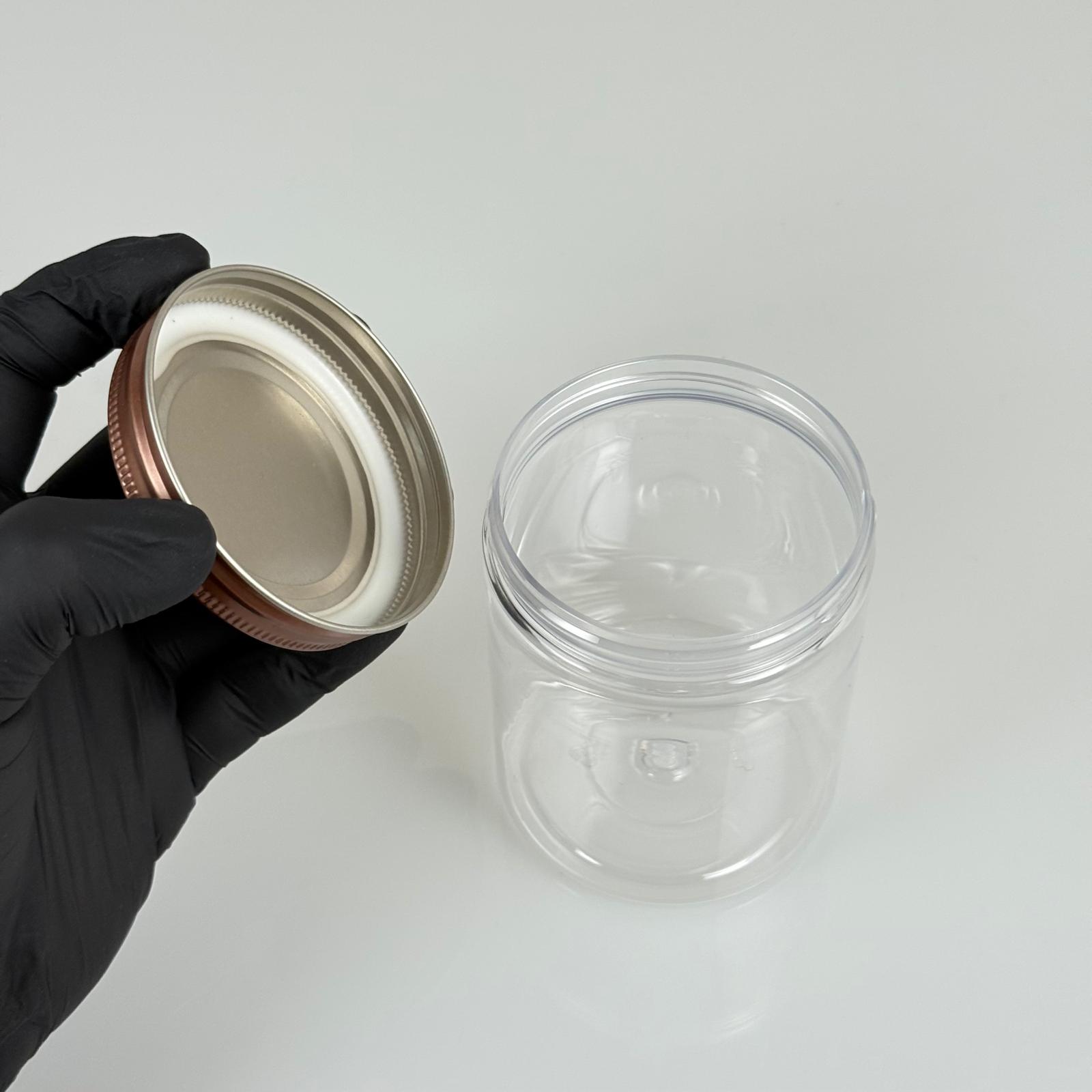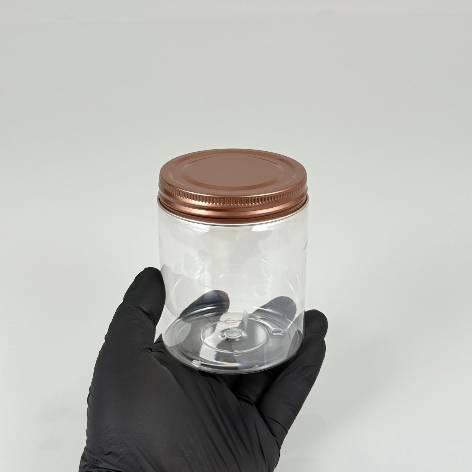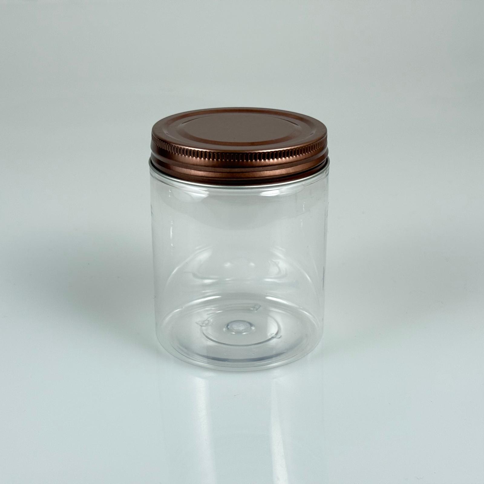 300 CC ŞEFFAF SERT PLASTİK KAVANOZ - BRONZ METAL KAPAKLI - 300 ML METAL KAPAKLI PLASTİK KAVANOZ - KOZMETİK KAVANOZ, GIDA KAVANOZU, KREM KAVANOZU VB. OLARAK KULLANABİLİRSİNİZ - 312 adet