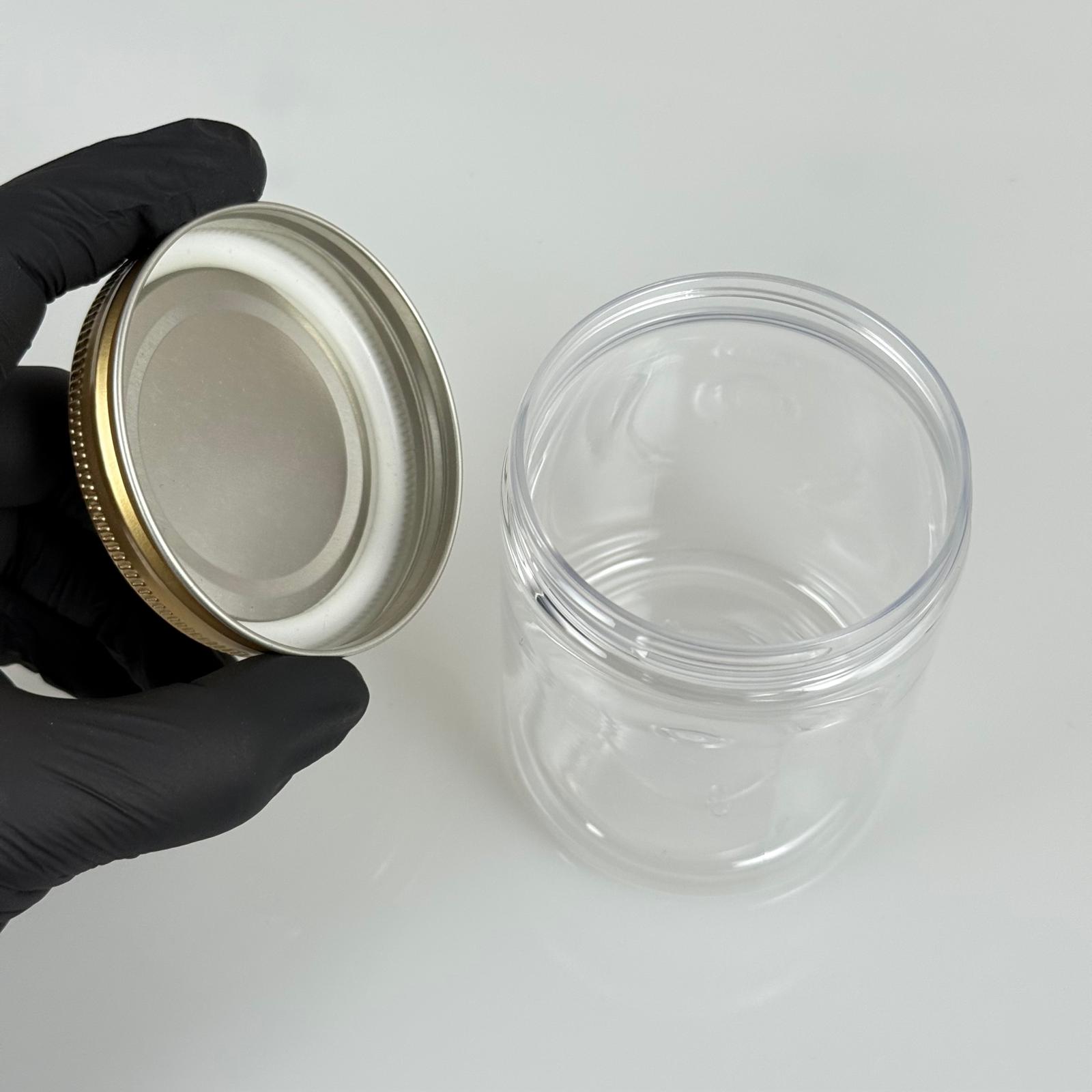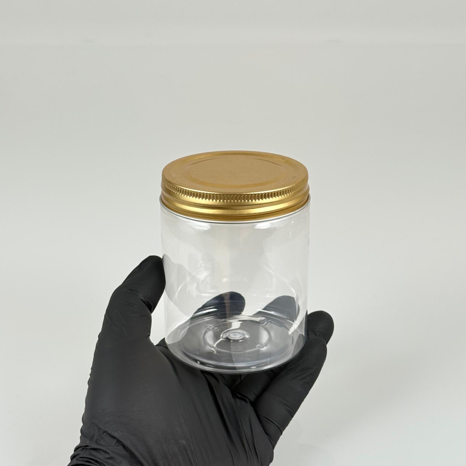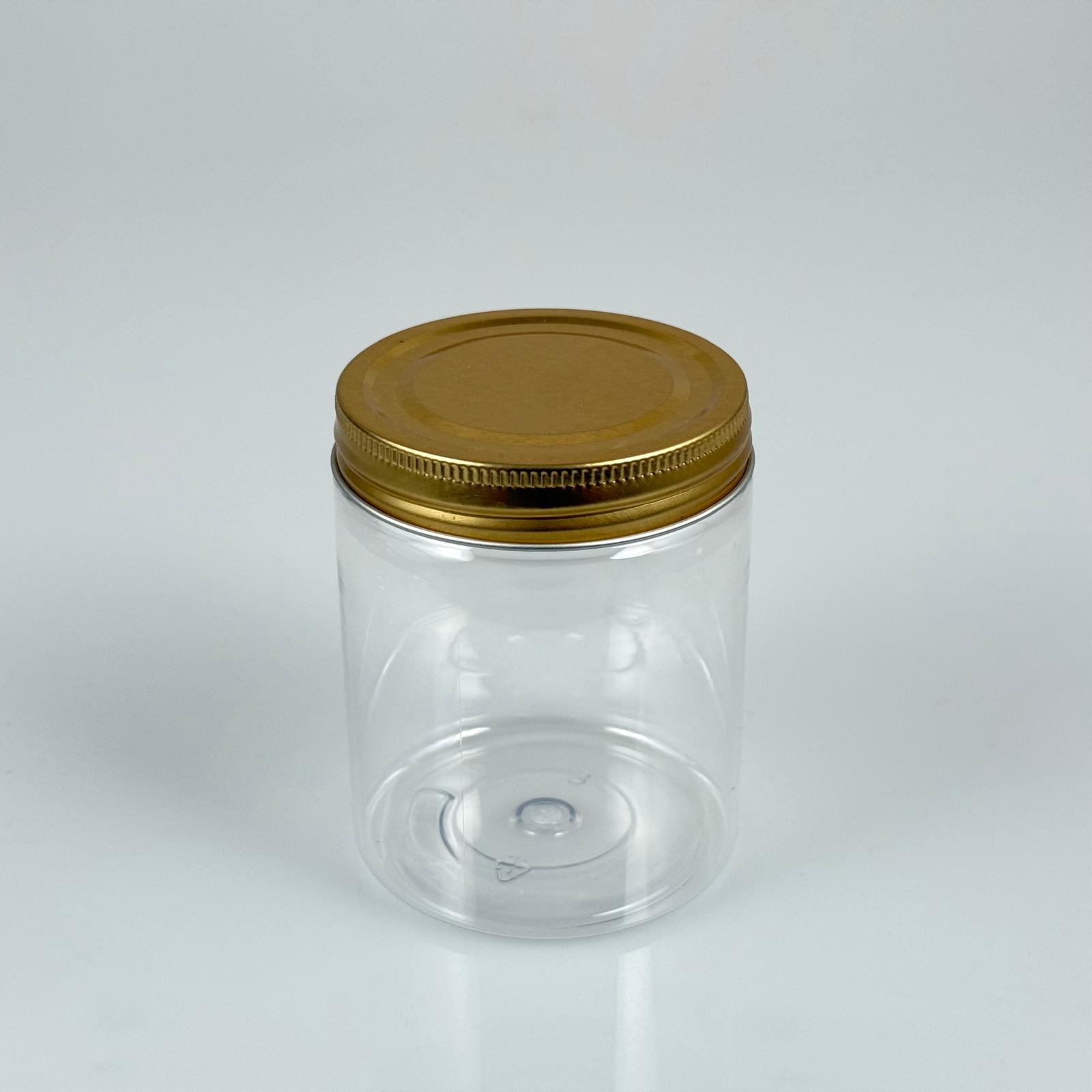 300 CC ŞEFFAF SERT PLASTİK KAVANOZ - GOLD METAL KAPAKLI - 300 ML METAL KAPAKLI PLASTİK KAVANOZ - KOZMETİK KAVANOZ, GIDA KAVANOZU VE KREM KAVANOZU OLARAK KULLANABİLİRSİNİZ - 312 adet