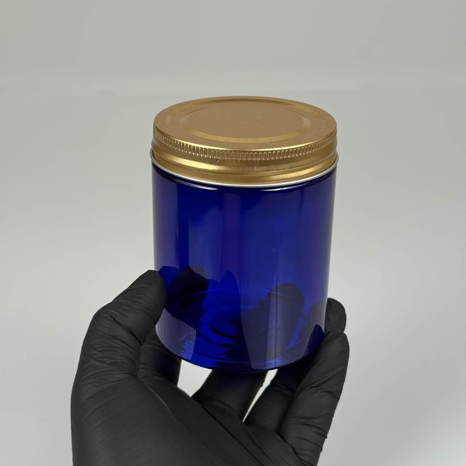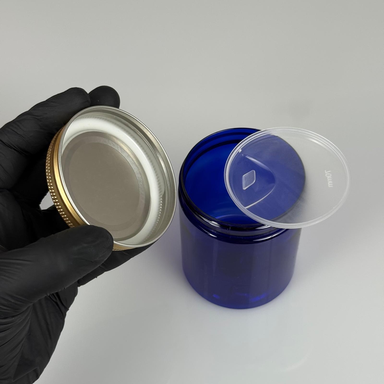 300 ML SERT PET KAVANOZ + GOLD METAL KAPAK + İÇ TIPA - 300 CC KALIN MAVİ PLASTİK KAVANOZ GOLD METAL KAPAKLI İÇ TIPALI TAKIM - KREM KAVANOZLARI - 280 adet