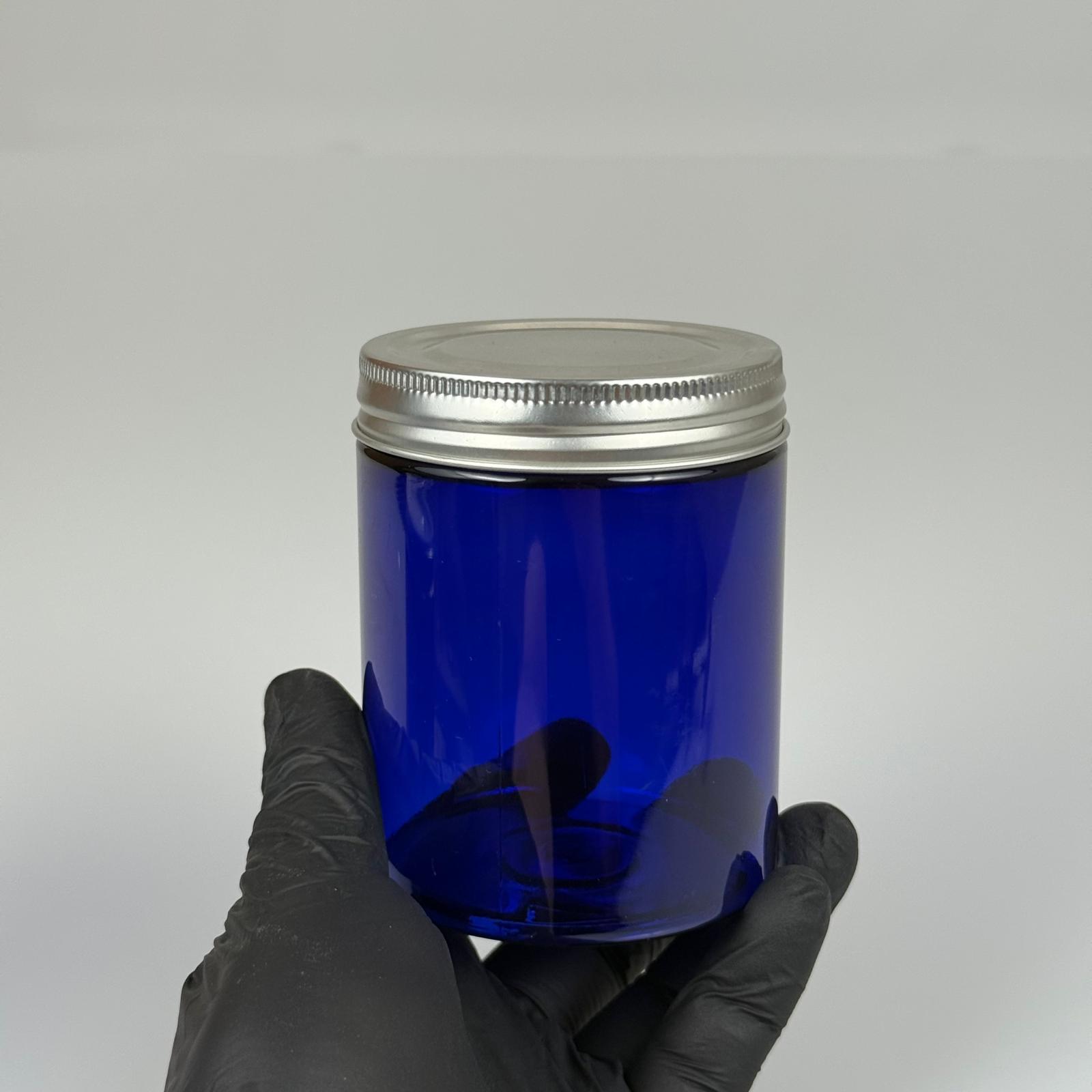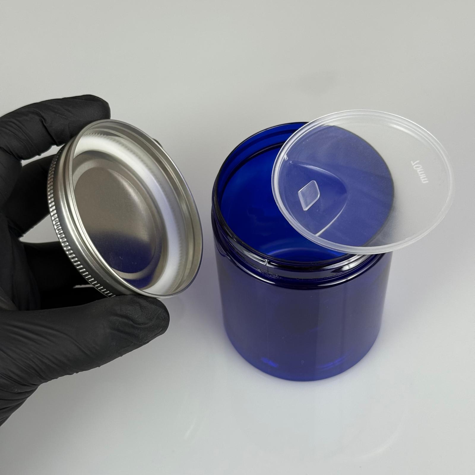 300 ML SERT PET KAVANOZ + GÜMÜŞ METAL KAPAK + İÇ TIPA - 300 CC KALIN MAVİ PLASTİK KAVANOZ GÜMÜŞ METAL KAPAKLI İÇ TIPALI TAKIM - KREM KAVANOZLARI - 280 adet