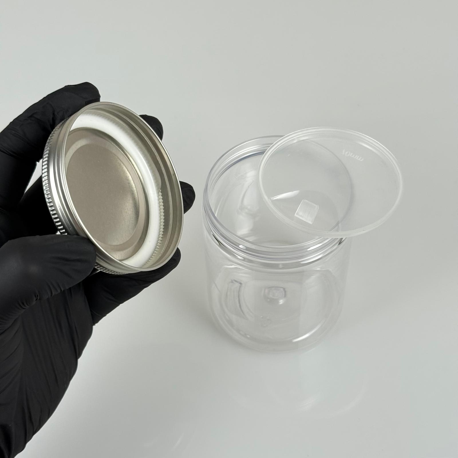 300 ML SERT PET KAVANOZ + GÜMÜŞ METAL KAPAK + İÇ TIPA - 300 CC KALIN ŞEFFAF PLASTİK KAVANOZ GÜMÜŞ METAL KAPAKLI İÇ TIPALI TAKIM - KREM KAVANOZLARI - 312 adet