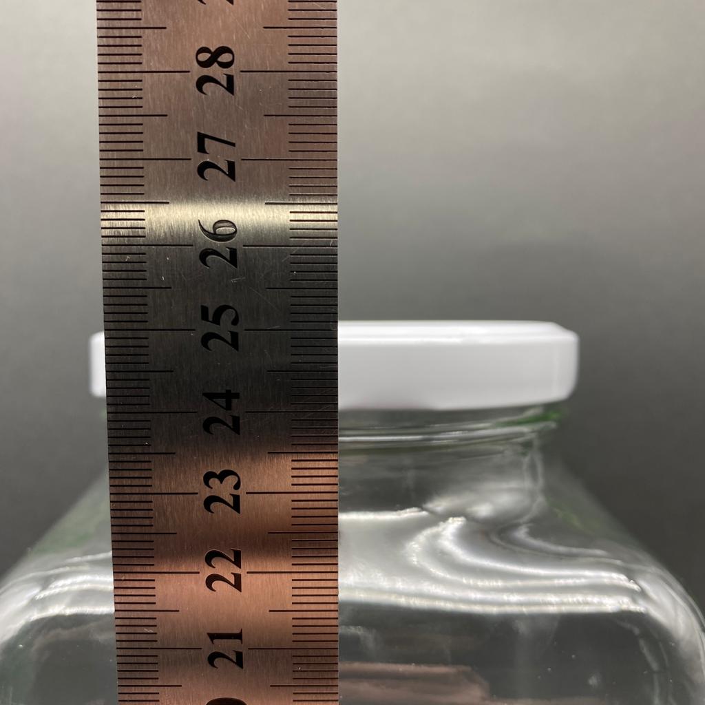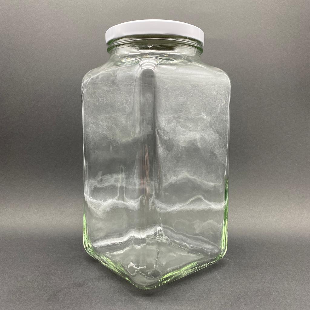 3000 CC KÖŞELİ CAM KAVANOZ - BEYAZ METAL KAPAKLI - 3 LİTRE CAM KARE KAVANOZ - 12 adet