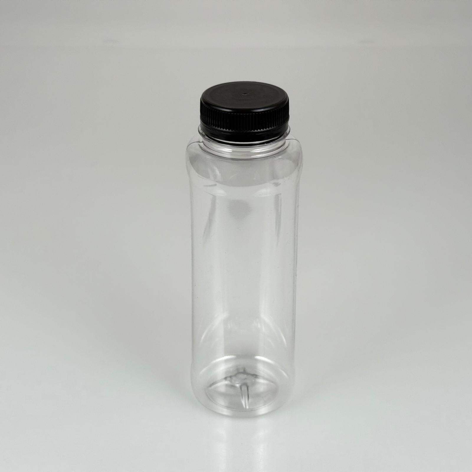 330 CC DÜZ GENİŞ AĞIZLI PET ŞİŞE - KİLİTLİ SİYAH KAPAKLI - 330 ML DETOKS MEYVE SUYU ŞİŞESİ - 350 adet