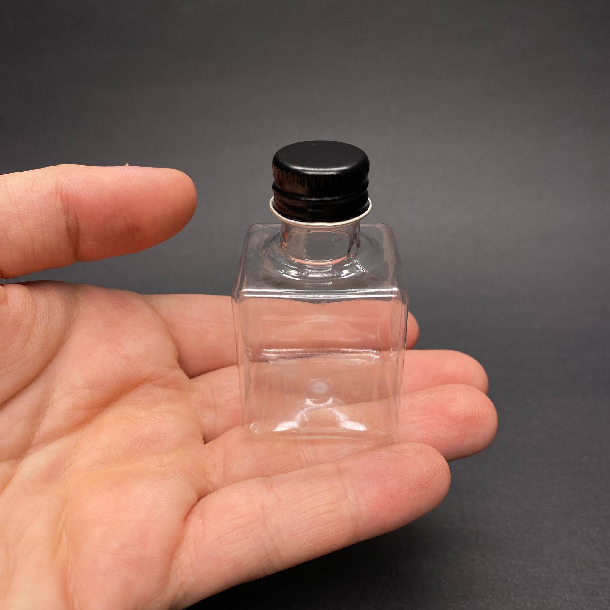 35 CC ŞEFFAF KARE PET ŞİŞE - SİYAH METAL KAPAKLI - 35 ML PET ŞİŞE - 1500 adet