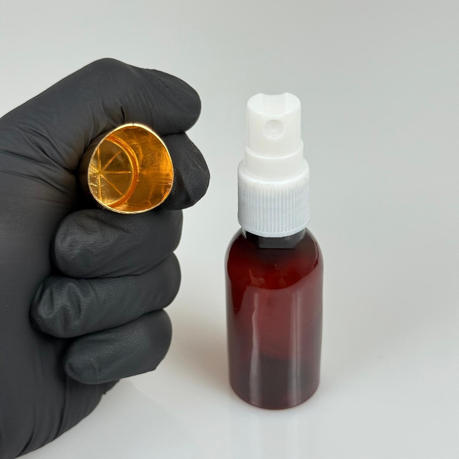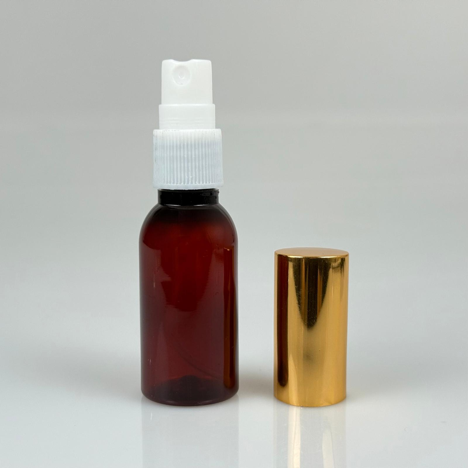 35 ML PET KOLONYA, PARFÜM VB ŞİŞELERİ - METAL ALÜMİNYUM GOLD KAPAK + VİDALI SPREY + 35 CC AMBER ŞİŞE SET TAKIM - 1000 adet