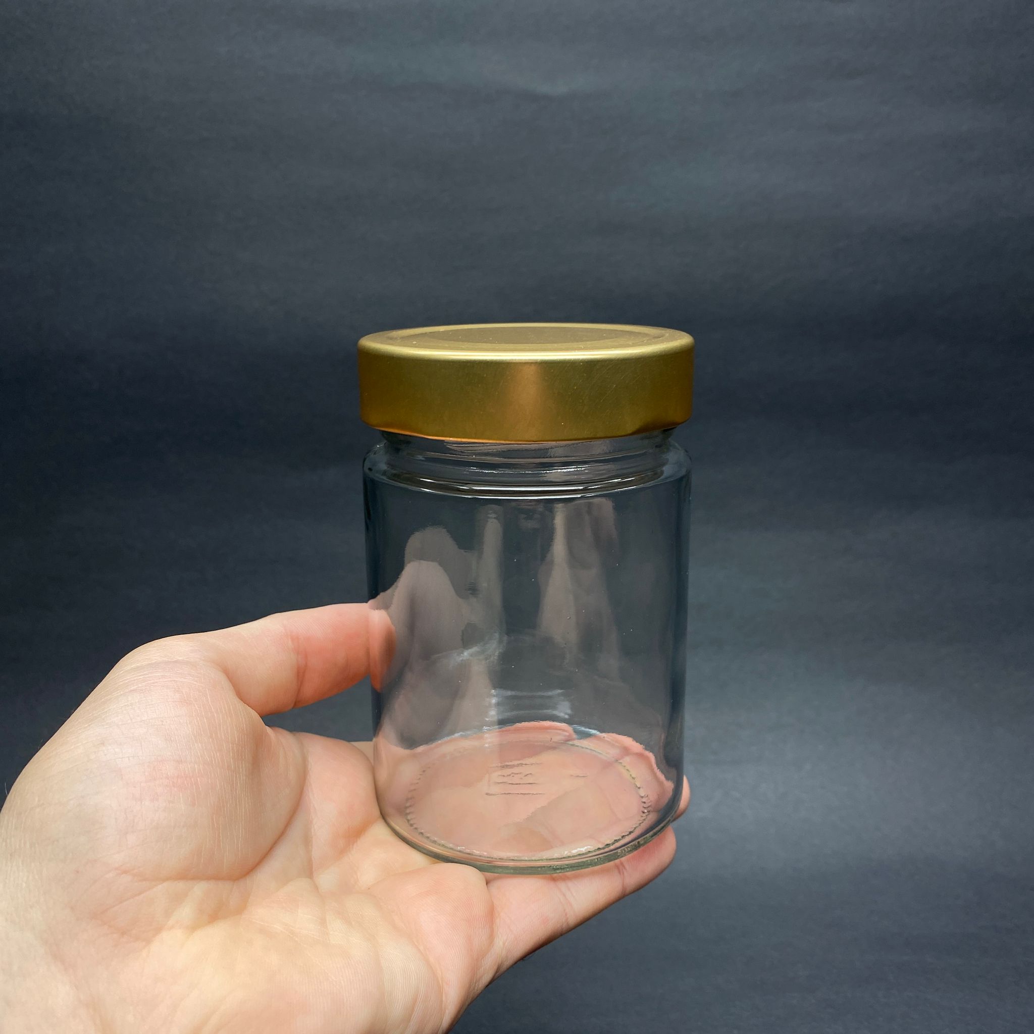 350 CC ALMAN KAVANOZ - GOLD METAL KAPAKLI - 350 ML DERİN KAPAKLI CAM KAVANOZ - 80 adet