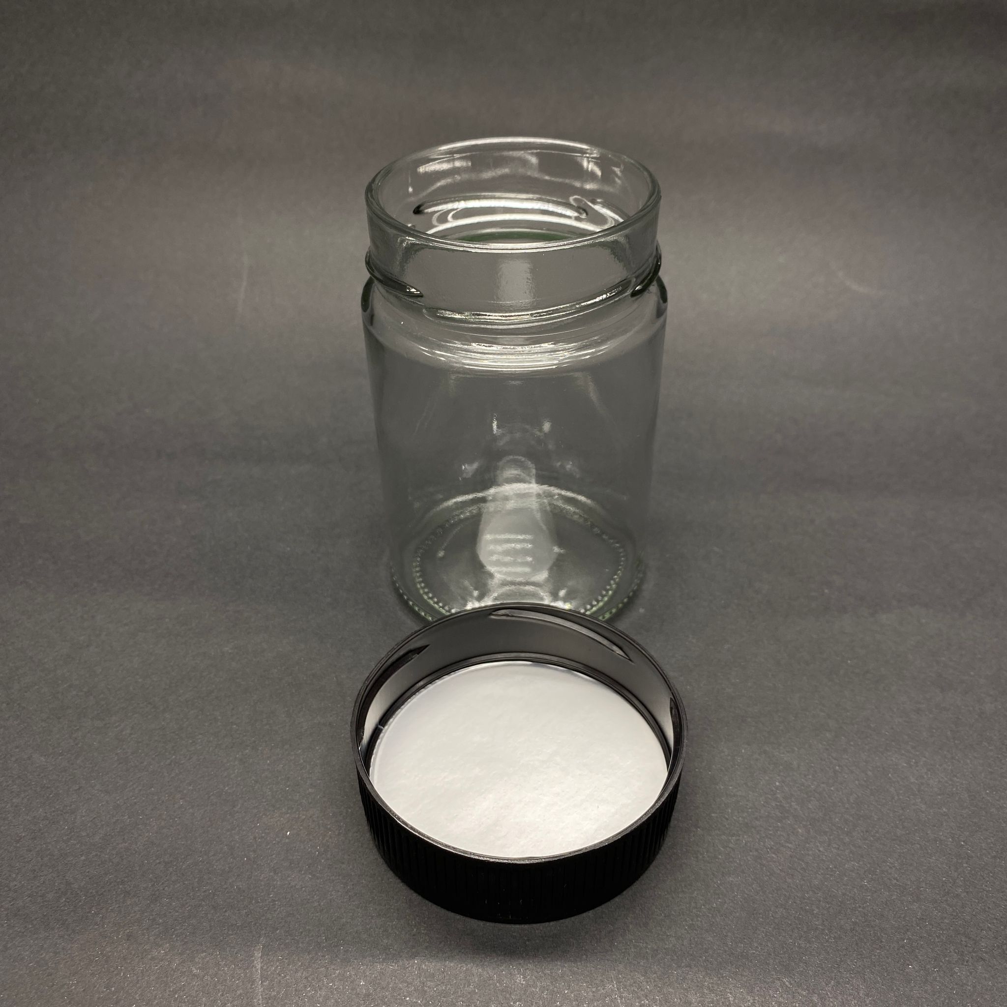 350 CC ALMAN KAVANOZ - SİYAH PLASTİK ALÜMİNYUM CONTALI İNDİKSİYON KAPAKLI - 350 ML DERİN KAPAKLI CAM KAVANOZ - 80 adet