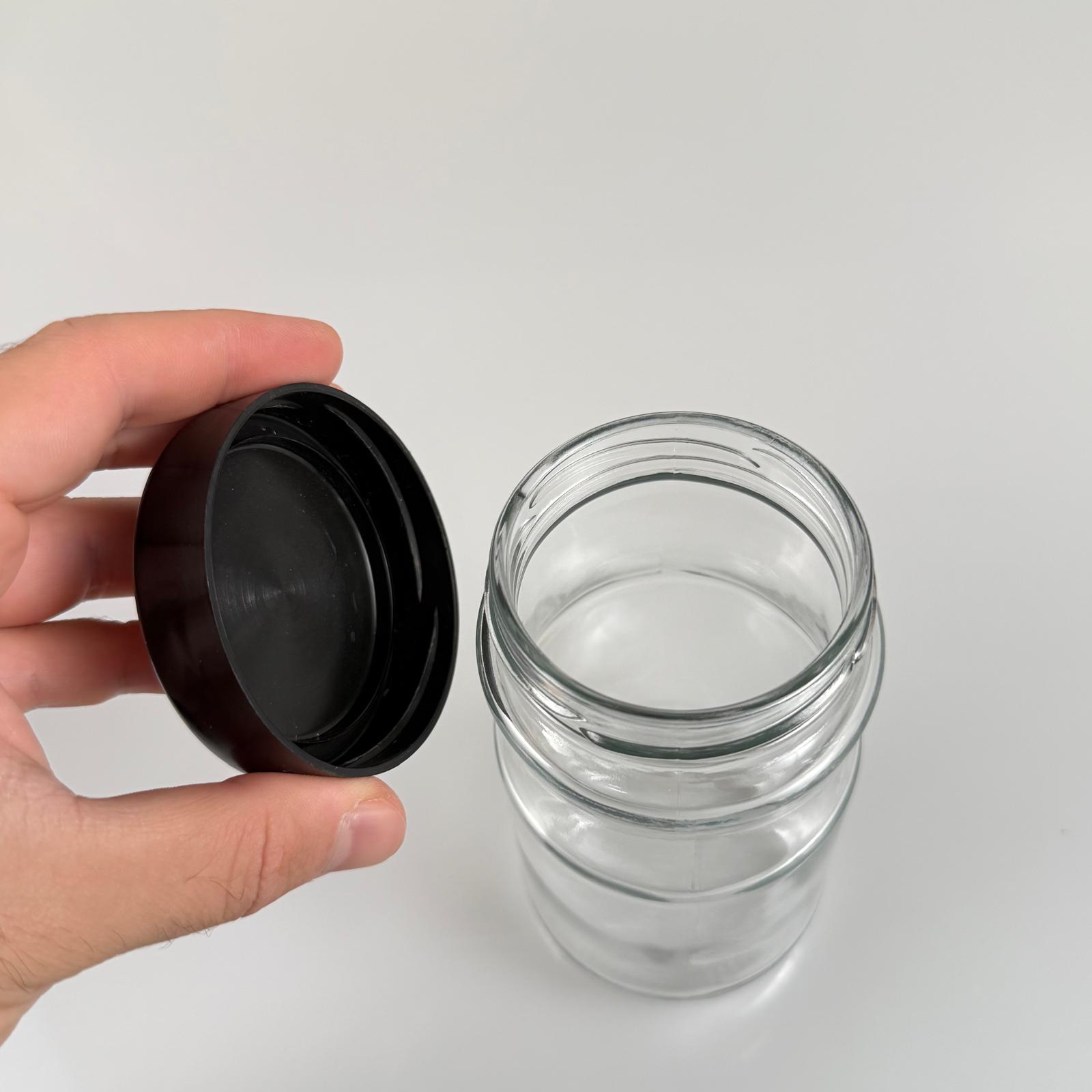 370 CC BOĞUMLU CAM KAVANOZ + SİYAH PLASTİK KAPAK - 370 ML PLASTİK KAPAKLI CAM KAVANOZ - 50 adet