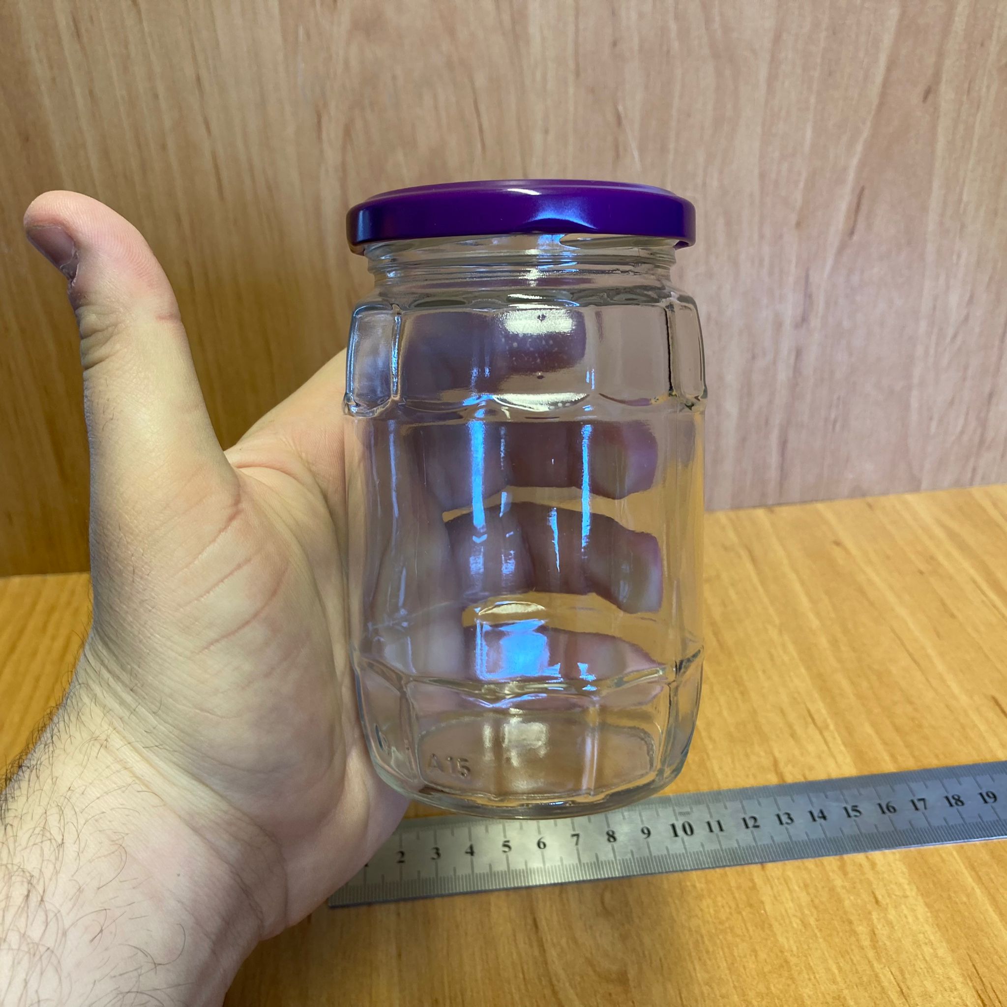 370 CC FIÇI KAVANOZ - MOR METAL KAPAKLI - 370 ML FIÇI TİPİ CAM KAVANOZ - 75 adet
