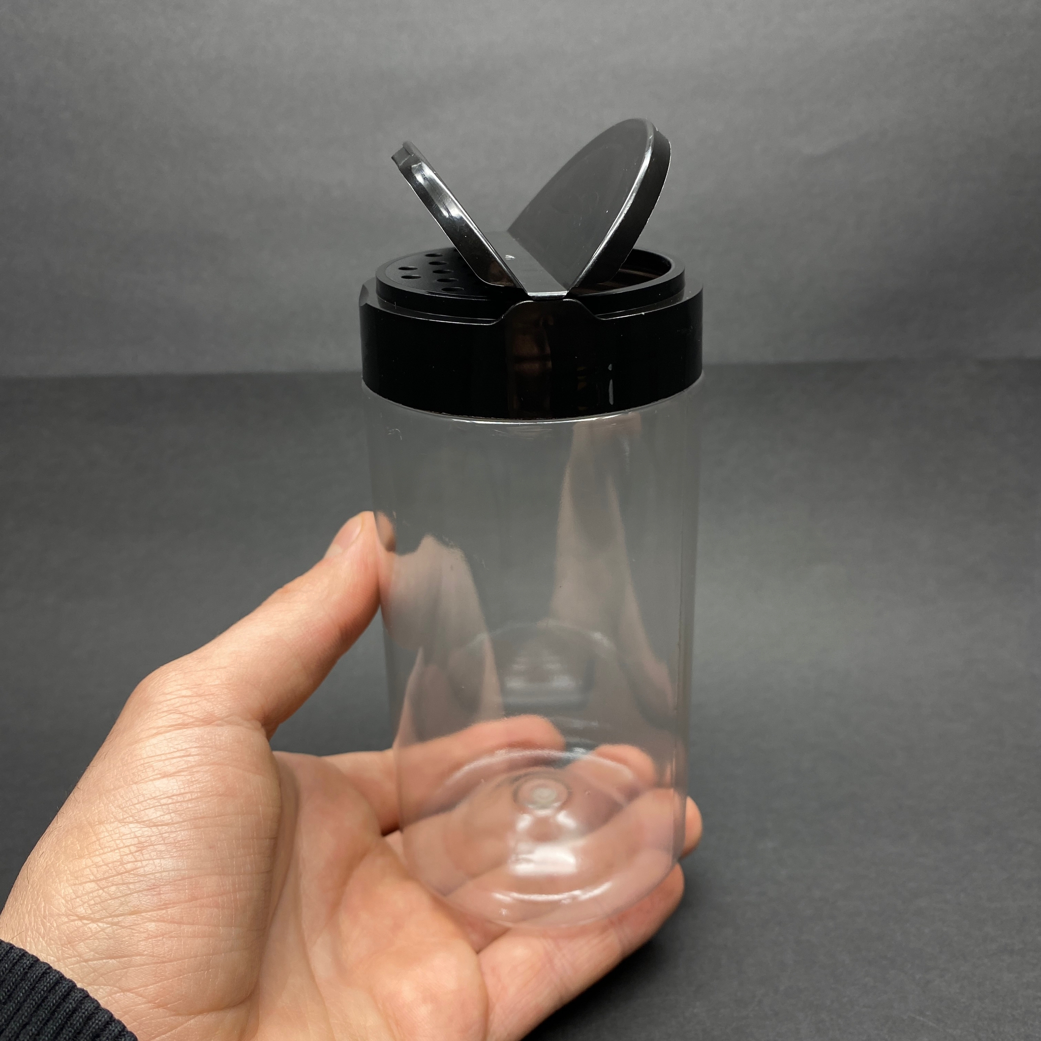 370 CC PLASTİK SİLİNDİR BAHARATLIK KAVANOZ - 370 ML BAHARAT KAVANOZU - SİYAH AÇILIR KAPANIR KAPAKLI - 500 adet