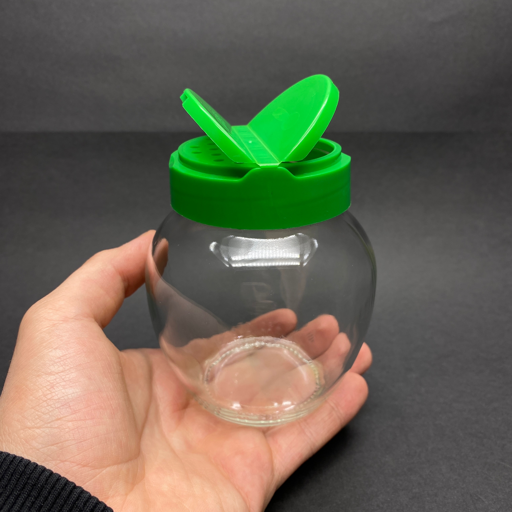 370 CC YUMURTA CAM BAHARATLIK KAVANOZ - 370 ML OVAL BAHARAT KAVANOZU - YEŞİL AÇILIR KAPANIR KAPAKLI - 60 adet