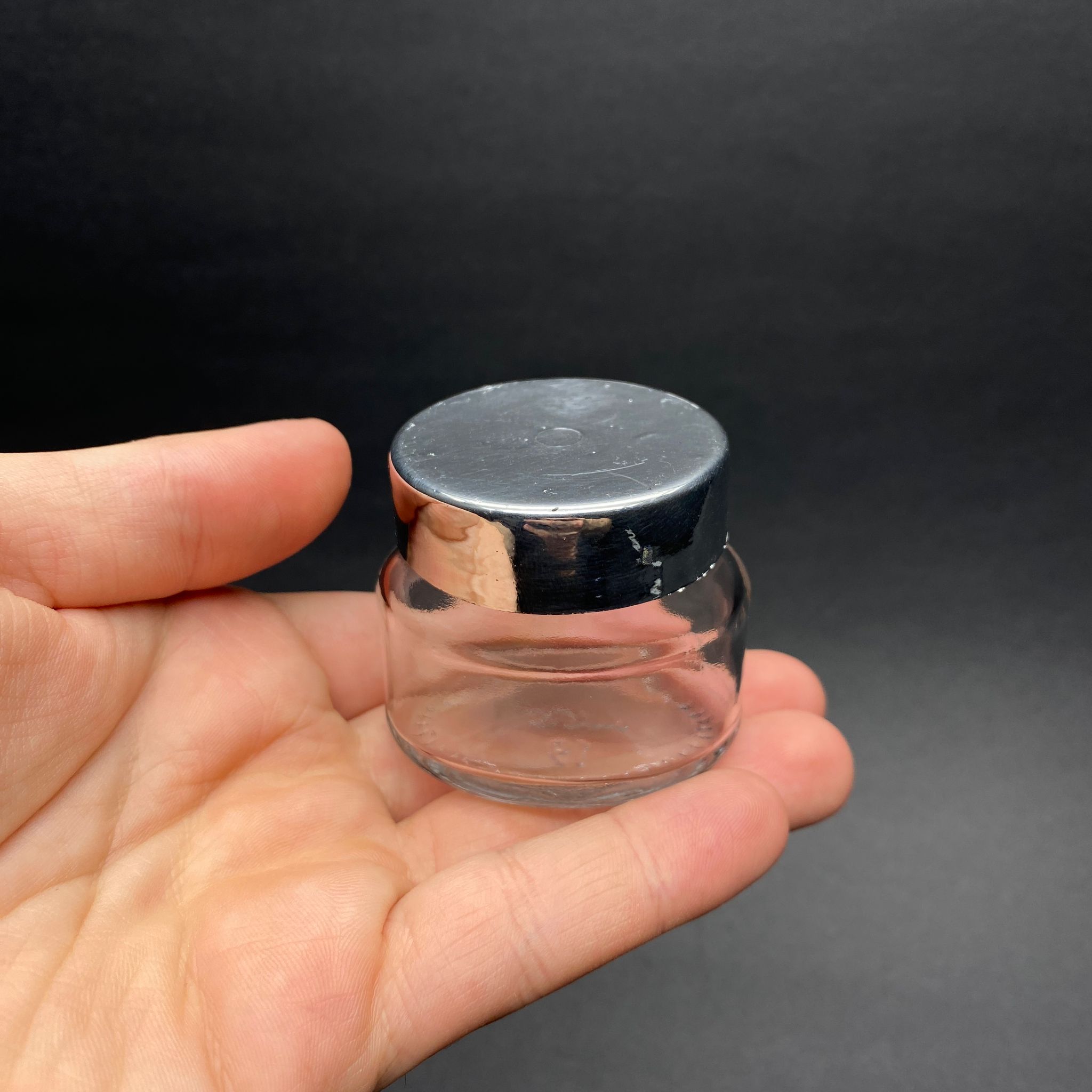 40 CC ELİPS KAVANOZ - GÜMÜŞ KAPLAMALI DERİN PLASTİK KAPAK + KENDİNDEN YAPIŞKANLI SIZDIRMAZ CONTA - 40 ML OVAL CAM KAVANOZ - 220 adet