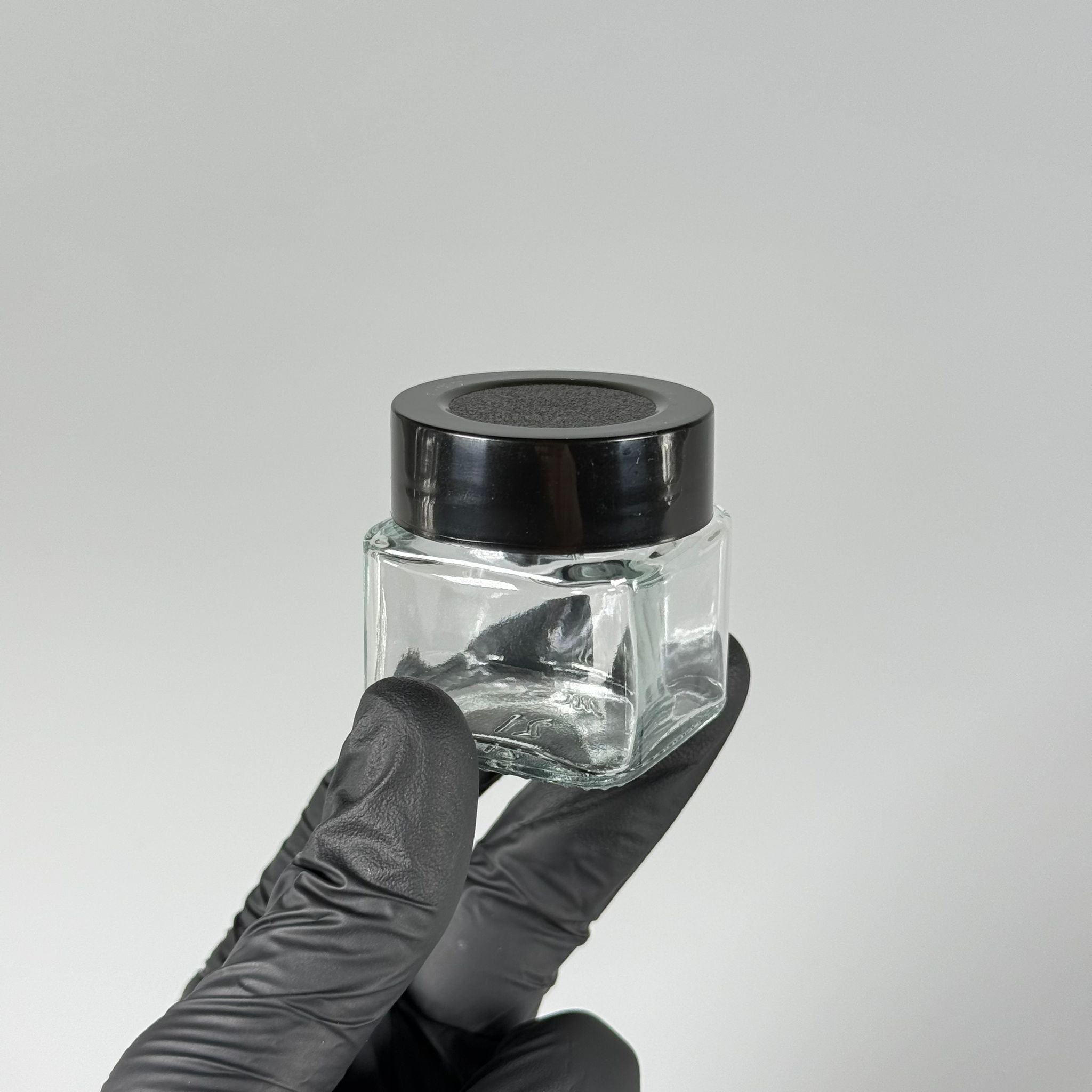 40 CC KARE CAM KAVANOZ - SİYAH PLASTİK DERİN ÜSTÜ KUMLAMA KAPAKLI + KENDİNDEN YAPIŞKANLI KÖPÜK CONTALI - 40 ML MİNİ KREM CAM KAVANOZLARI - 220 adet